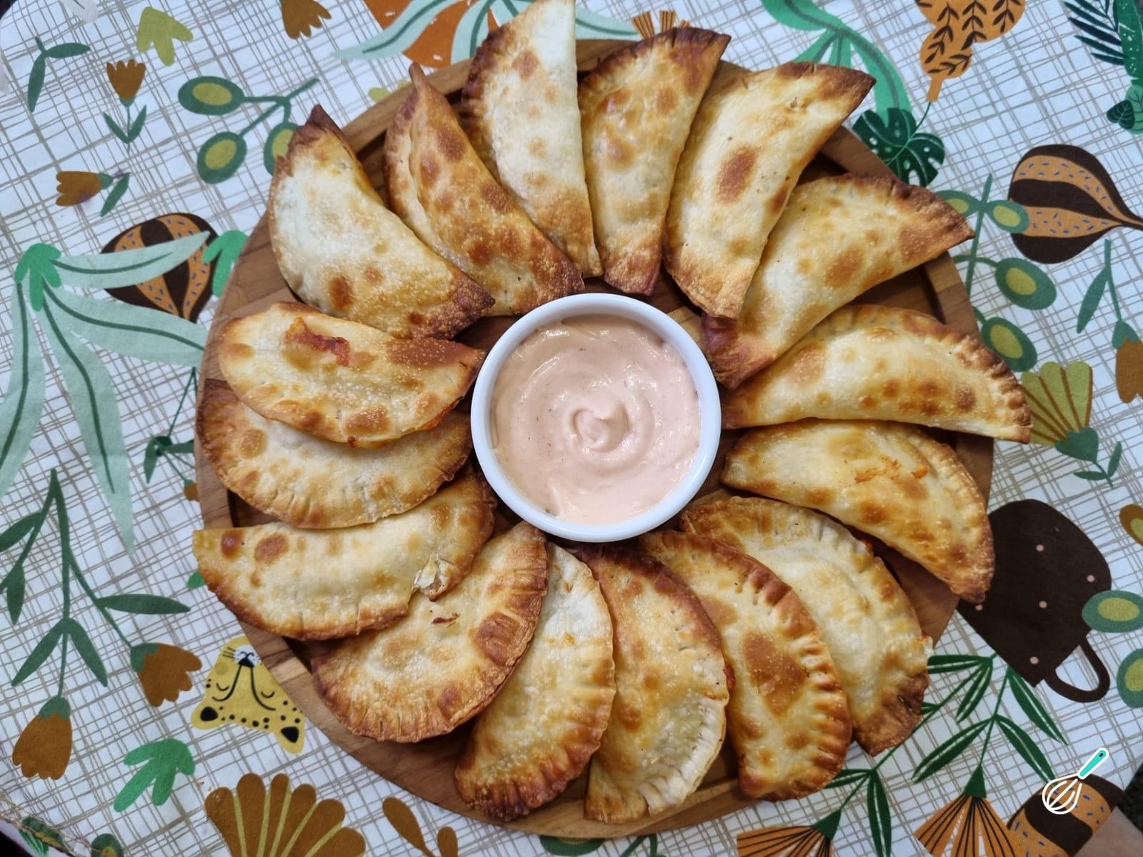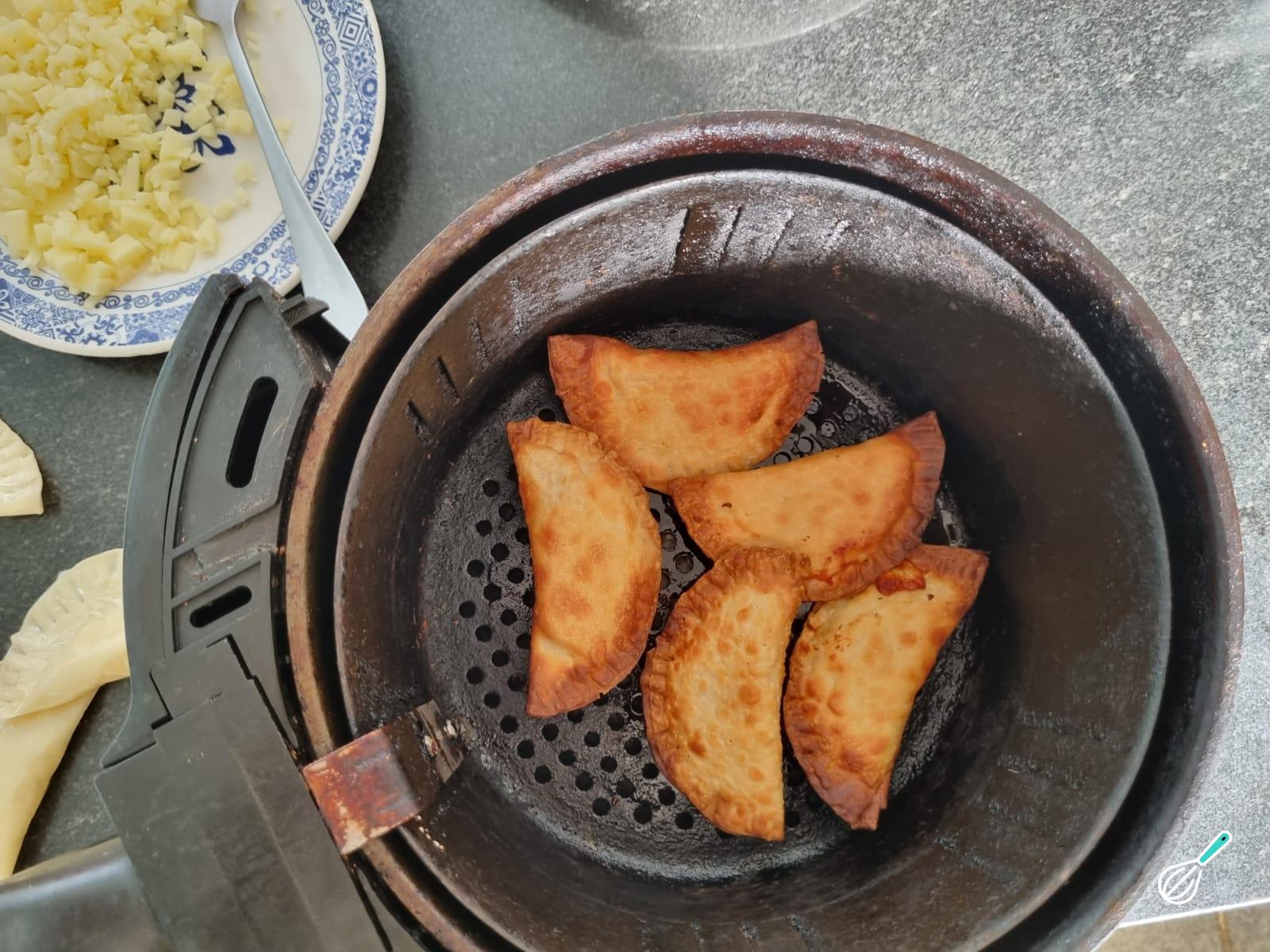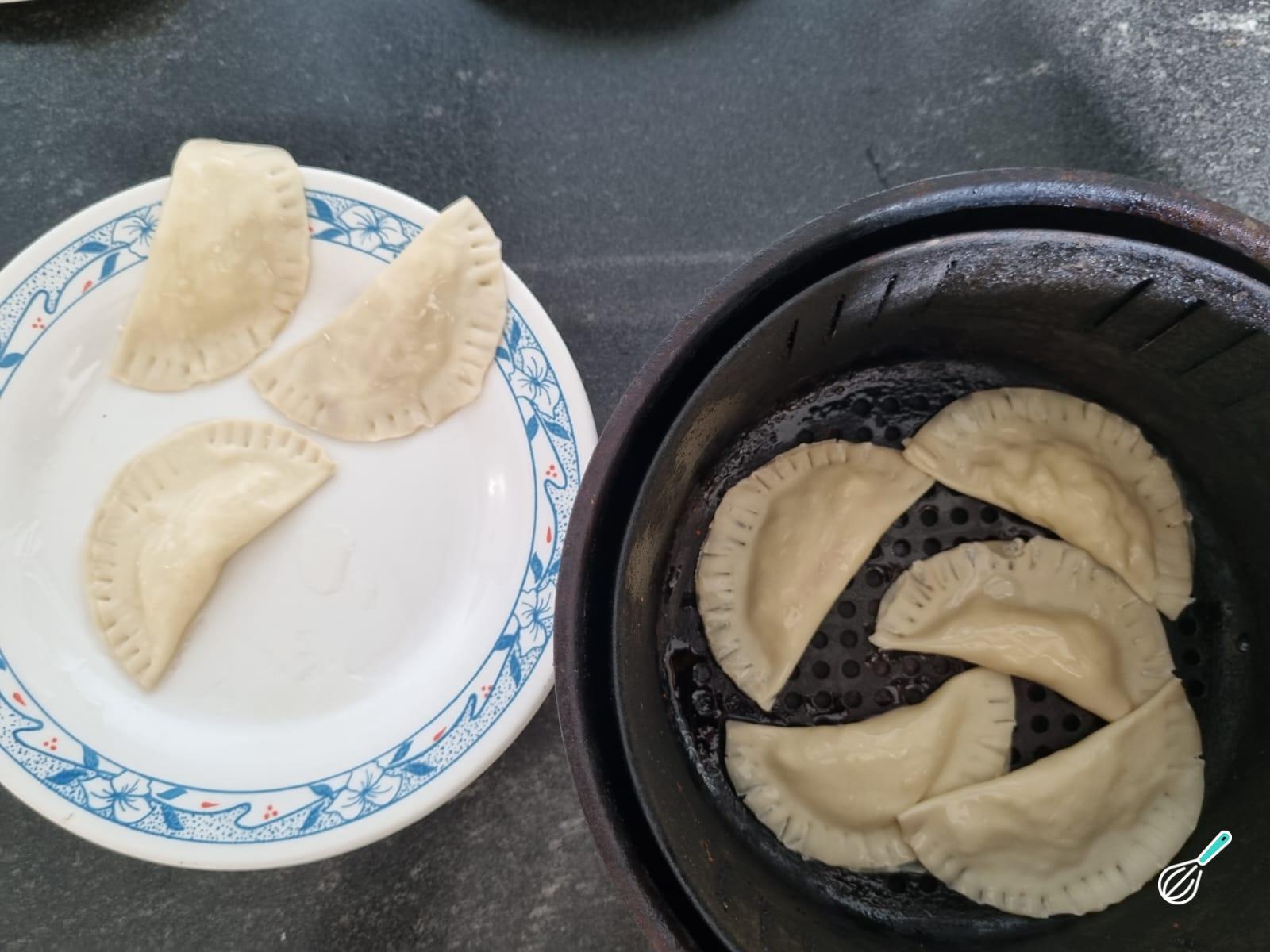 Antes de levar para air fryer, borrife o pincele um pouquinho de óleo nos pastéis.