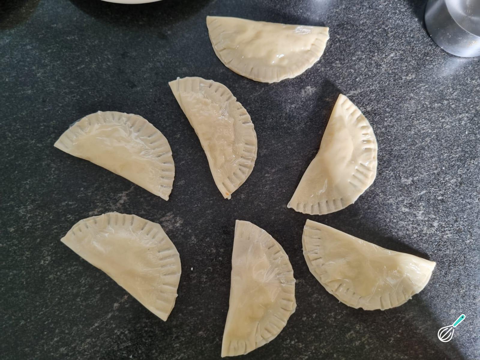 Feche um a um e aperte com o garfo para o recheio não vazar.