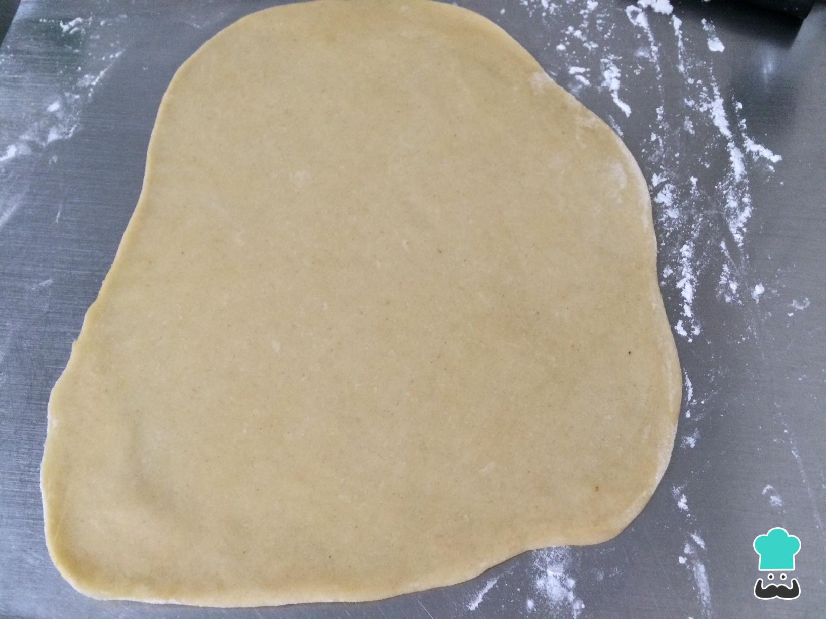 Amasse por 20 minutos ou até a massa ficar bem lisinha, suave e compacta. Depois abra numa bancada enfarinhada, com a ajuda de um rolo, até ficar com 2-3 mm de espessura.