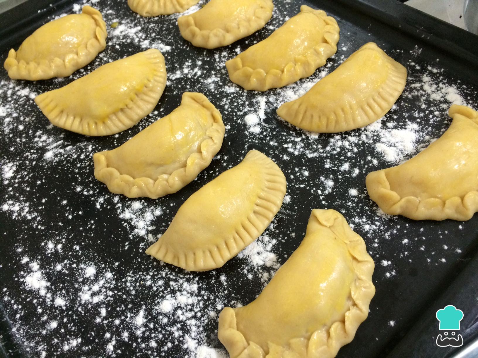 Feche os pastéis como preferir (com as mãos ou com um garfo), bata o ovo restante e pincele os pastéis com ele. Coloque os pastéis num tabuleiro de forno e leve para assar a 180ºC por 25 minutos ou até dourarem.