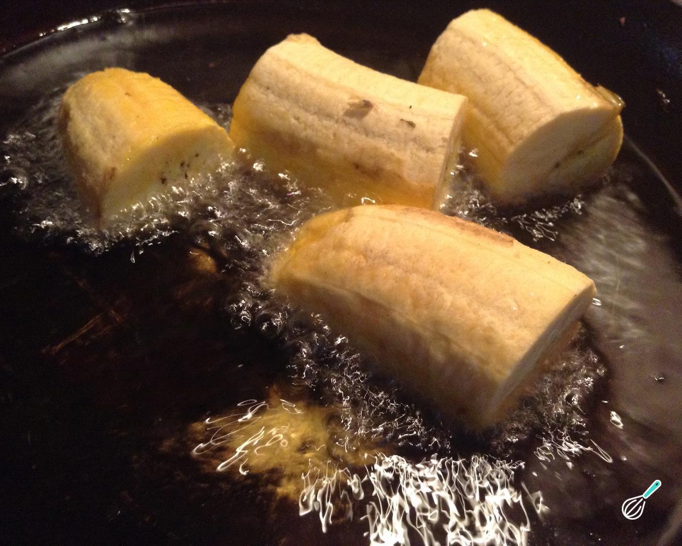 Esquente o óleo numa panela ou frigideira no fogo médio. Quando estiver bem quente coloque as bananas para fritar durante 10 minutos ou até ficarem bem douradinhas de todos os lados.