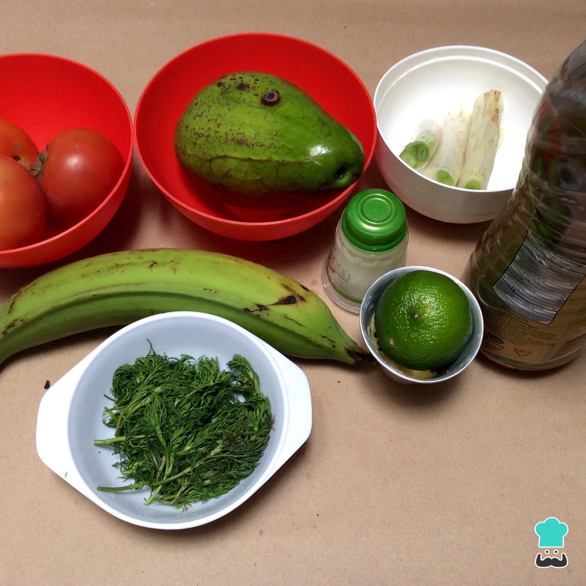 Para acompanhar os patacones colombianos, prepare um guacamole fácil: descasque o abacate e corte em cubos, coloque numa tigela e esmague com um garfo. Adicione o alho-poró ou cebola picados, reservando um pouco para preparar o hogao, o coentro também picado, tempere com sal, pimenta e limão a gosto, e misture tudo.