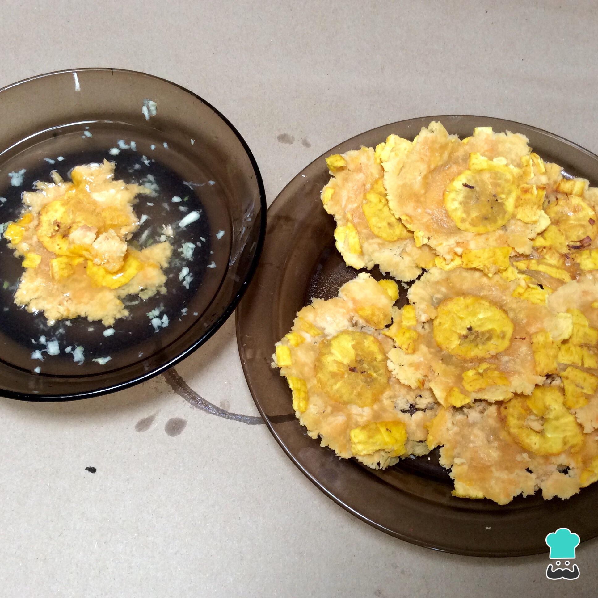 Após o tempo indicado, o passo seguinte dos patacones colombianos é esmagar as rodelas de banana frita, até que fiquem lisas.