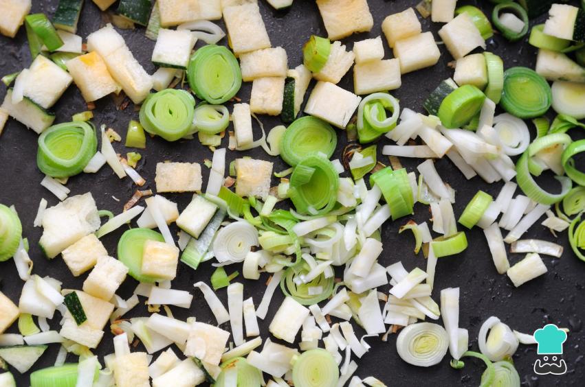 Dica: Se preferir, coloque o alho-poró no processador de alimentos e bata até ele ficar fininho.
