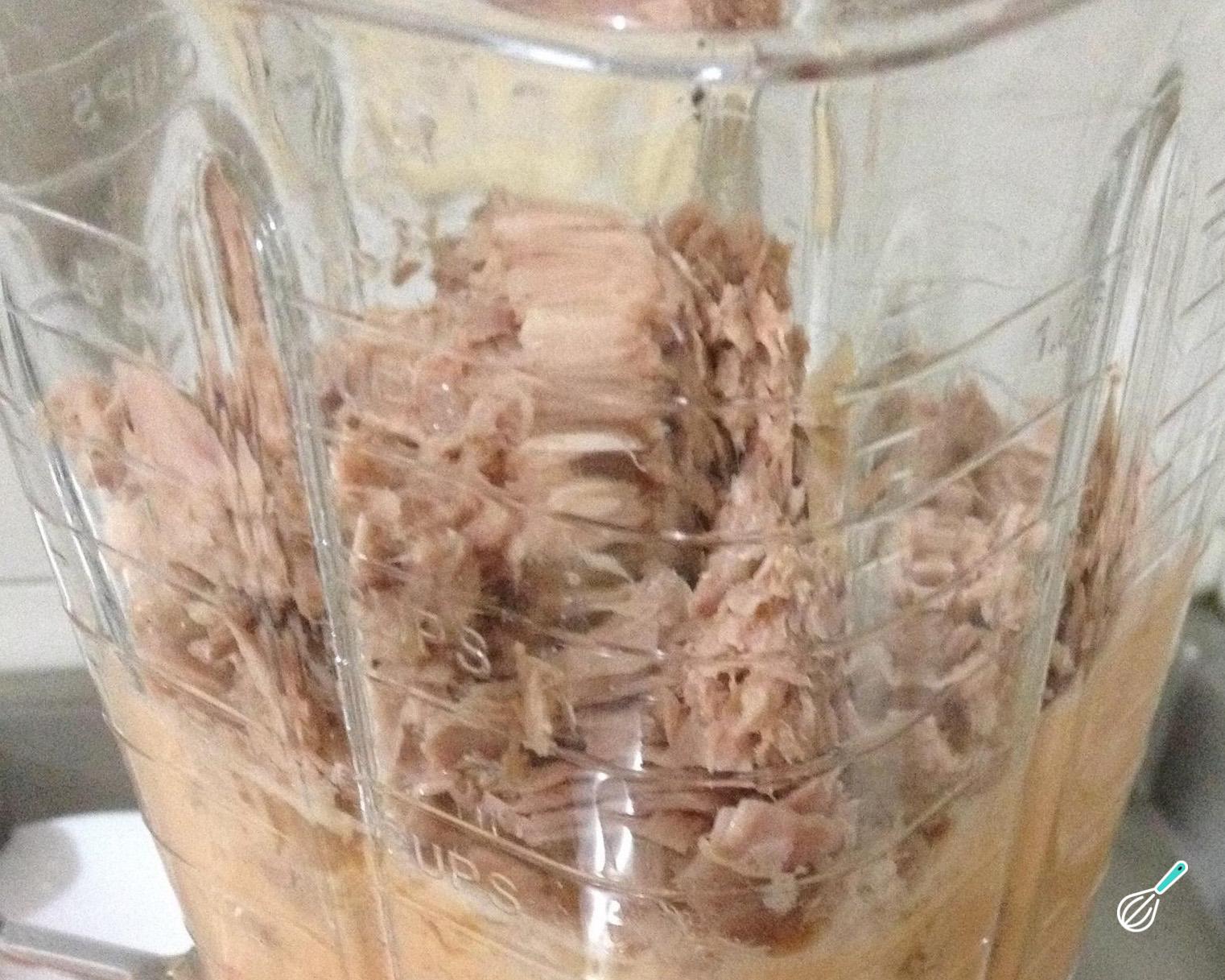 Escorra a água do atum e coloque-o em um processador de alimentos ou no liquidificador.