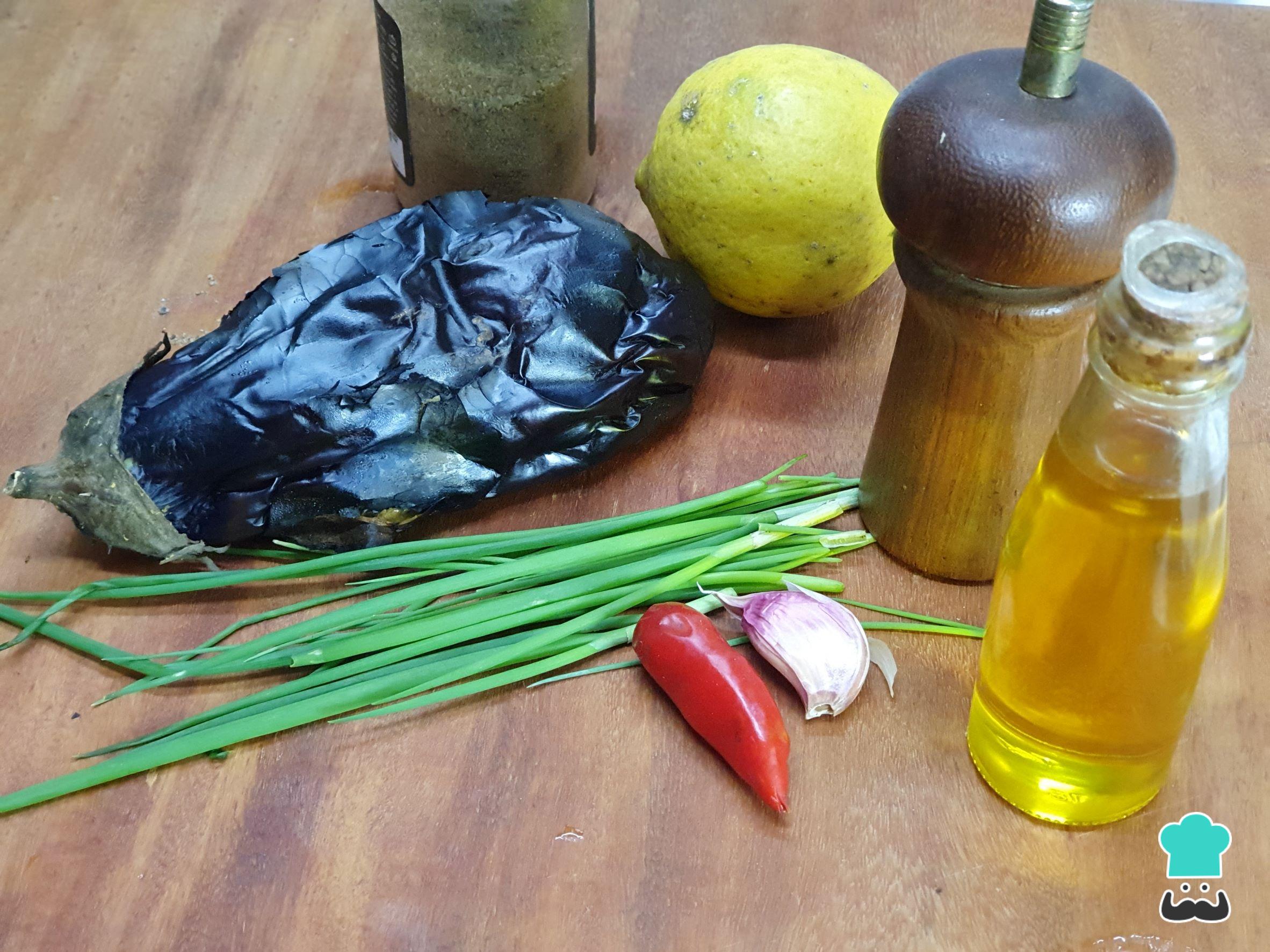 Separe os ingredientes para o preparo desta pasta de berinjela defumada bem simples e deliciosa.