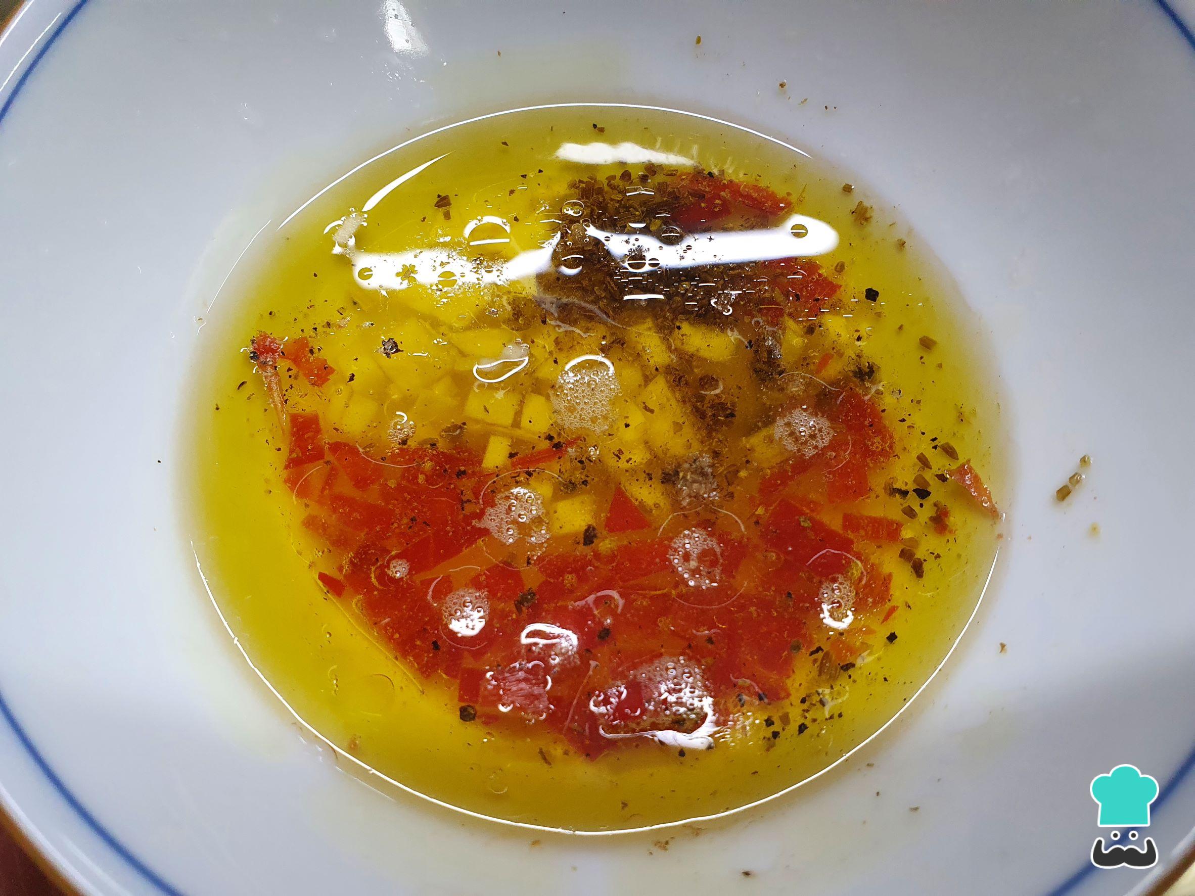 Pique a pimenta e o alho e junte com os demais ingredientes.