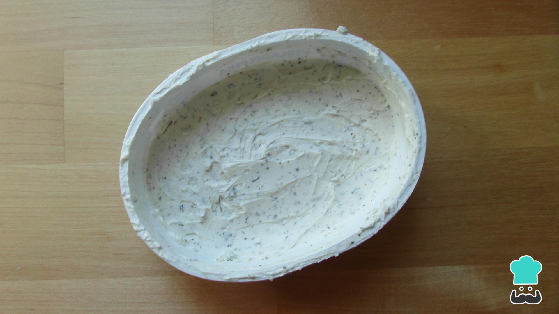 Alise o patê de ervas finas com cream cheese com as costas de uma colher e reserve na geladeira até à hora de servir.