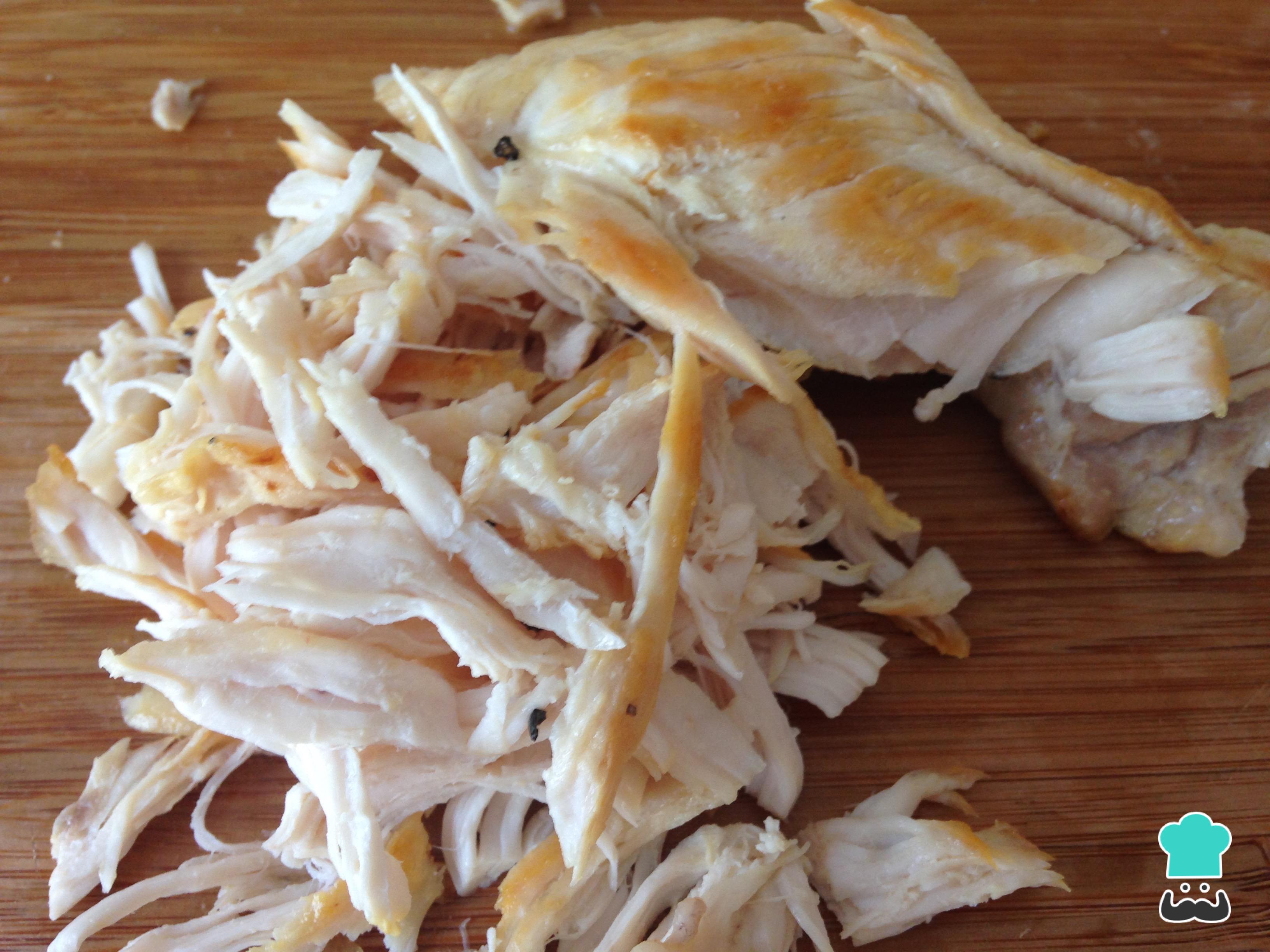 Para fazer patê de frango com requeijão, comece por preparar os ingredientes. Depois de cozer o frango do jeito tradicional (em uma panela com água fervente e um pouco de sal), desfie os filés e coloque no recipiente onde vai servir o patê.