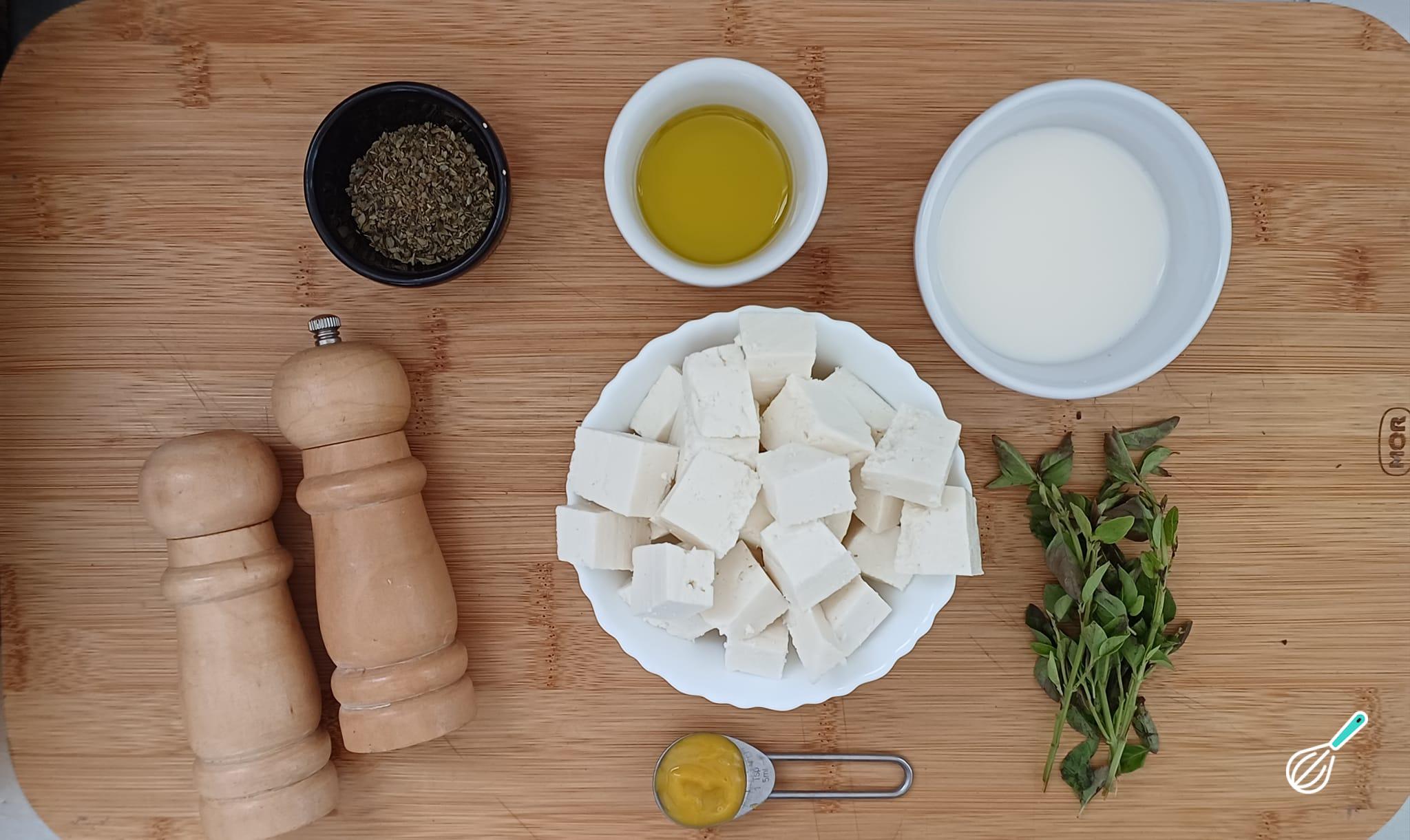 Comece separando os ingredientes necessários para preparar o patê de ricota.