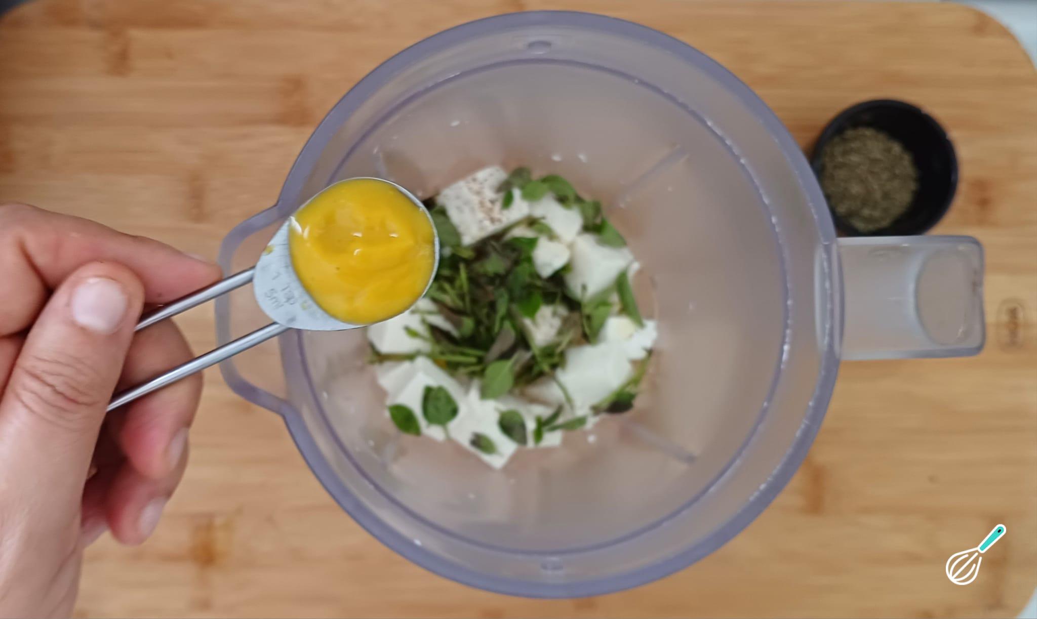 Bata bem todos os ingredientes e de vez em quando (com o liquidificador desligado), passe uma espátula ou colher pela lateral do aparelho para garantir que tudo seja triturado uniformemente.