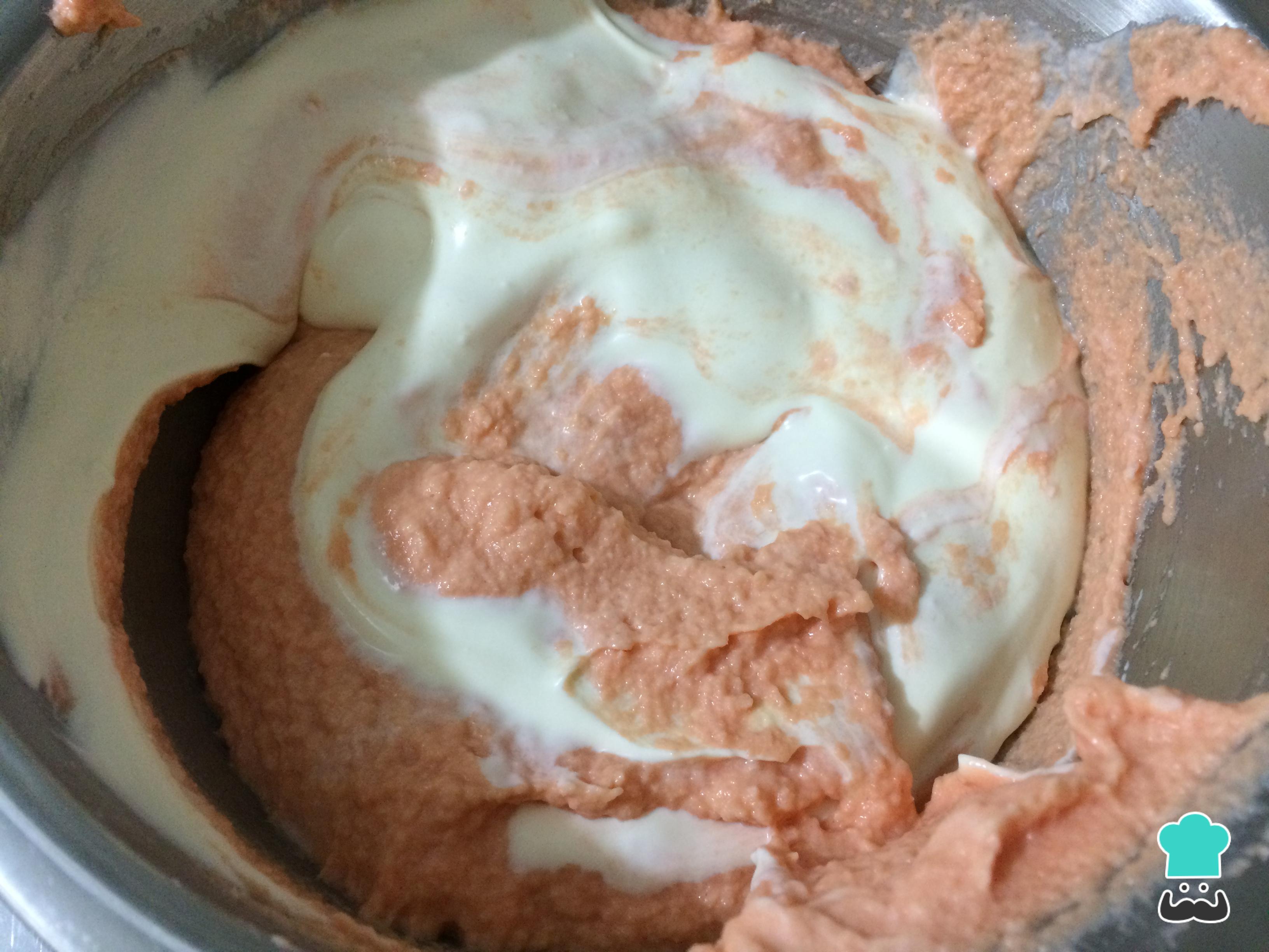 Para conferir mais cremosidade a esta receita de salmão, adicione o creme de leite e volte a bater.