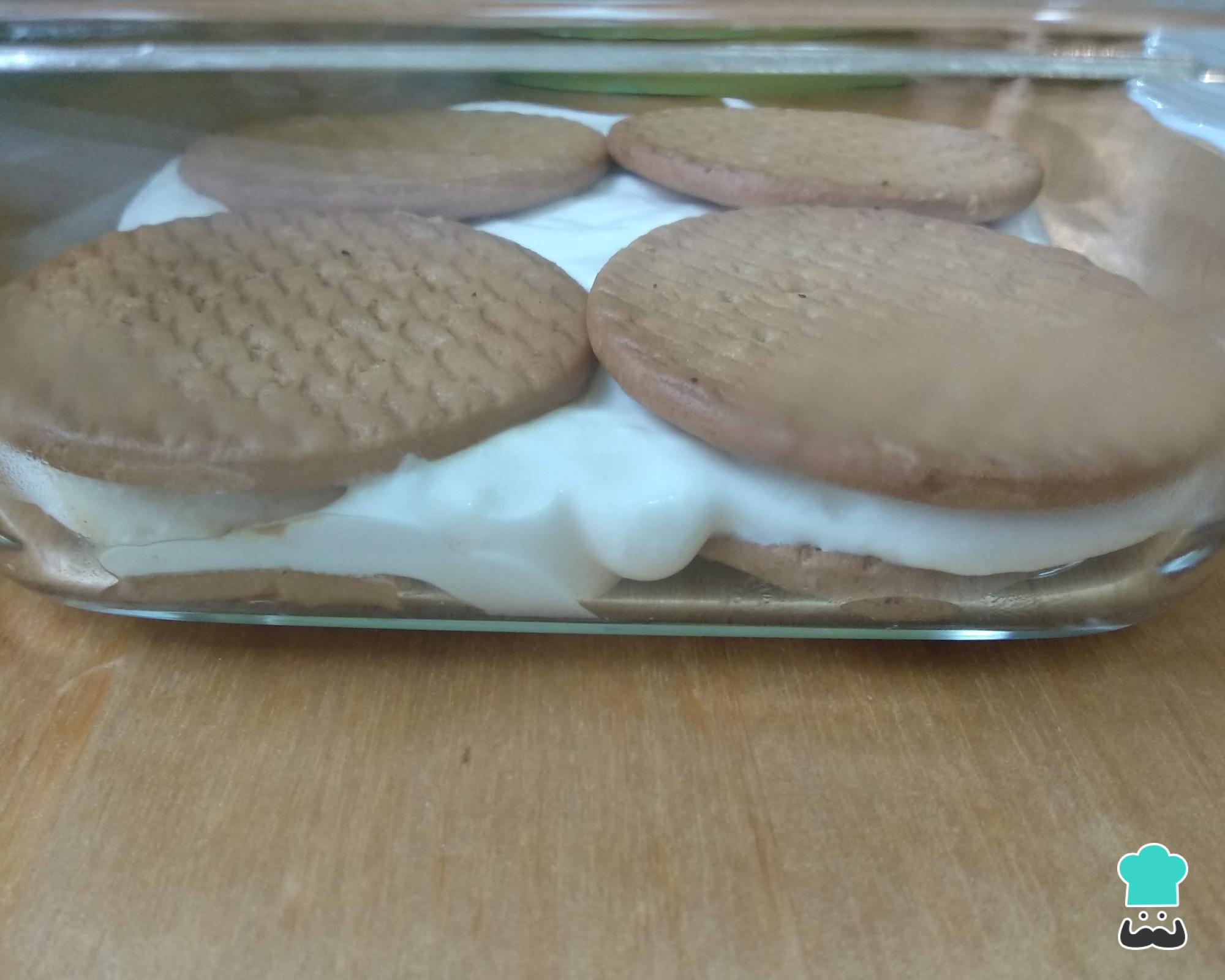 Cubra os biscoitos com uma camada de chantilly e sobreponha mais alguns biscoitos umedecidos com café.