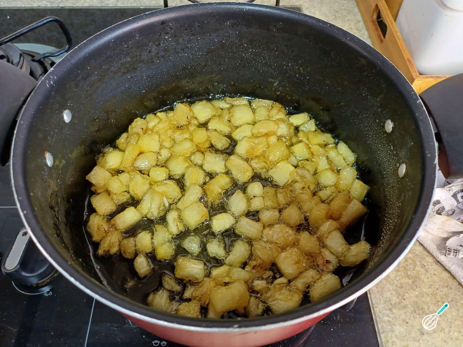 Dica: Mexa de vez em quando para o abacaxi não queimar e grudar na panela.