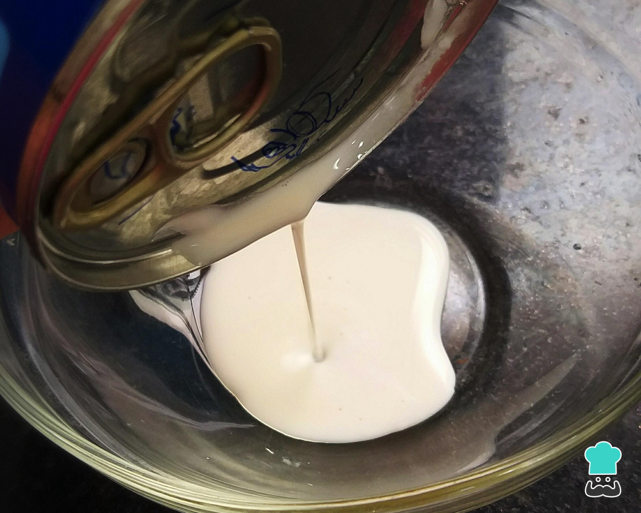 Separe o soro do creme de leite. Para isso, leve a lata ao freezer ou congelador por 30 minutos, faça 2 furos e vire para escorrer o soro. Reserve o soro e o creme.