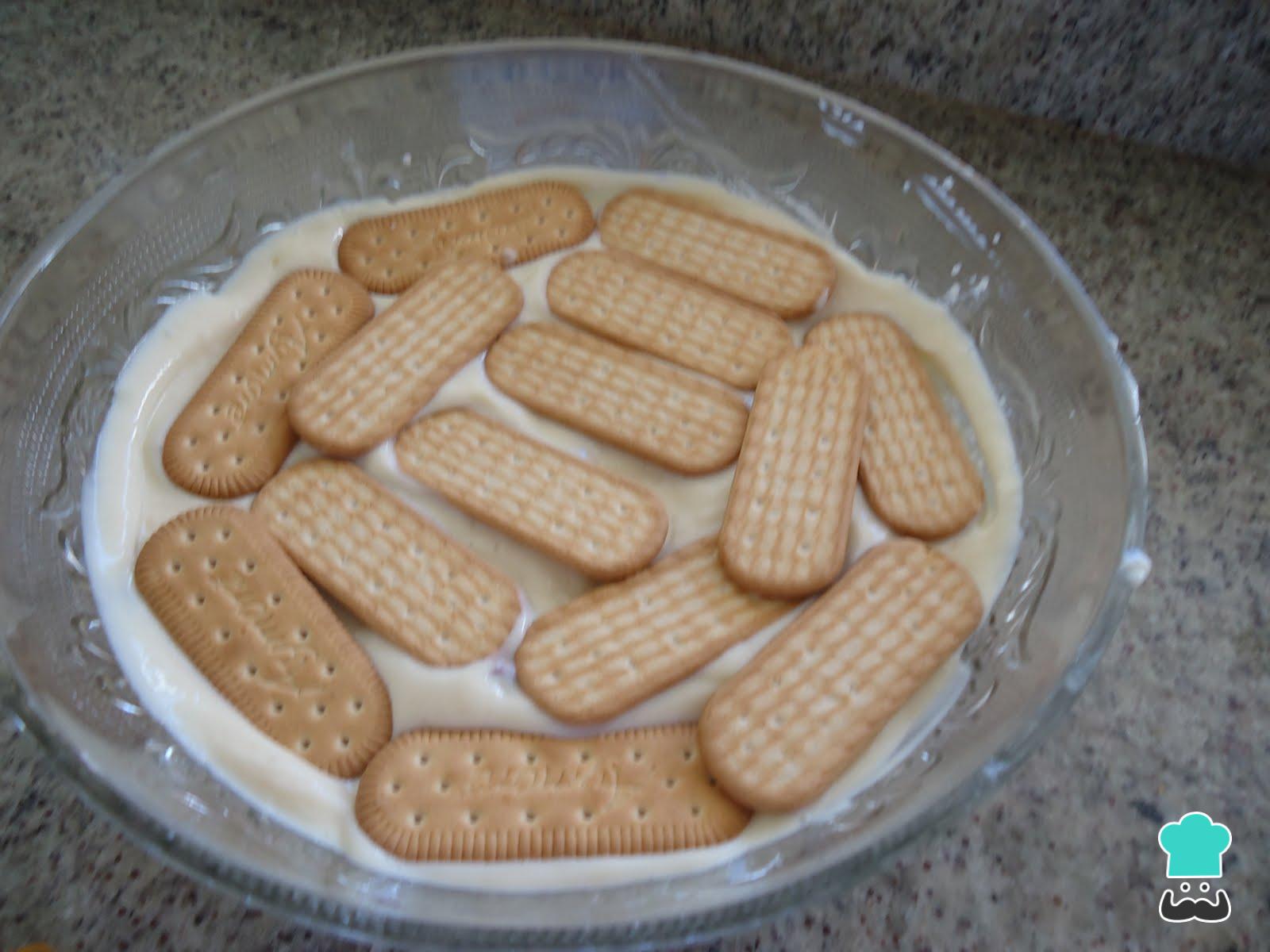 Dica: Não precisa umedecer as bolachas, elas ficarão úmidas desde que permaneçam entre os dois cremes.