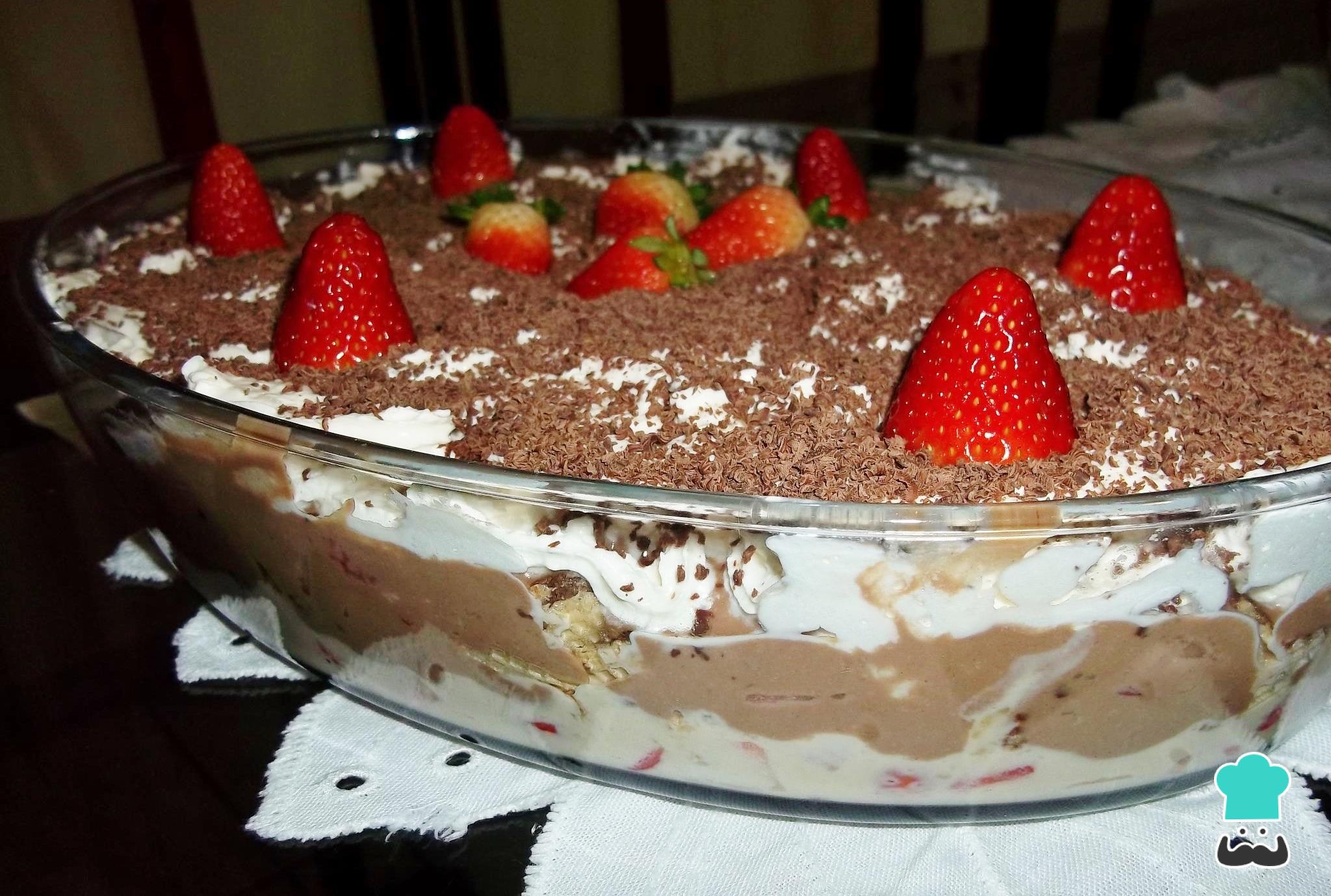 Como fazer Pavê de chocolate com morango e chantilly: