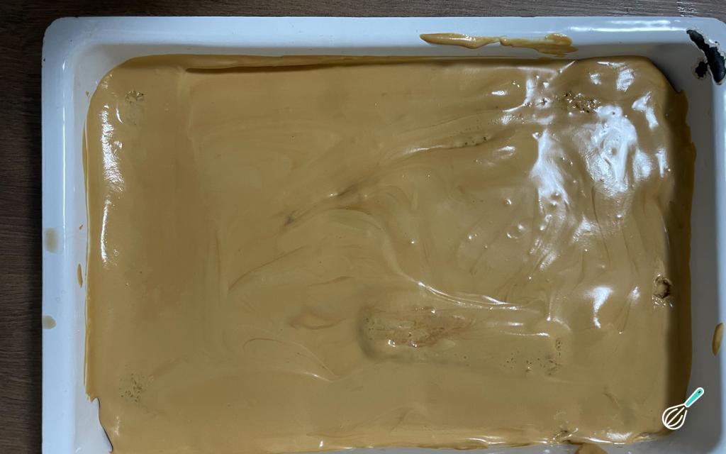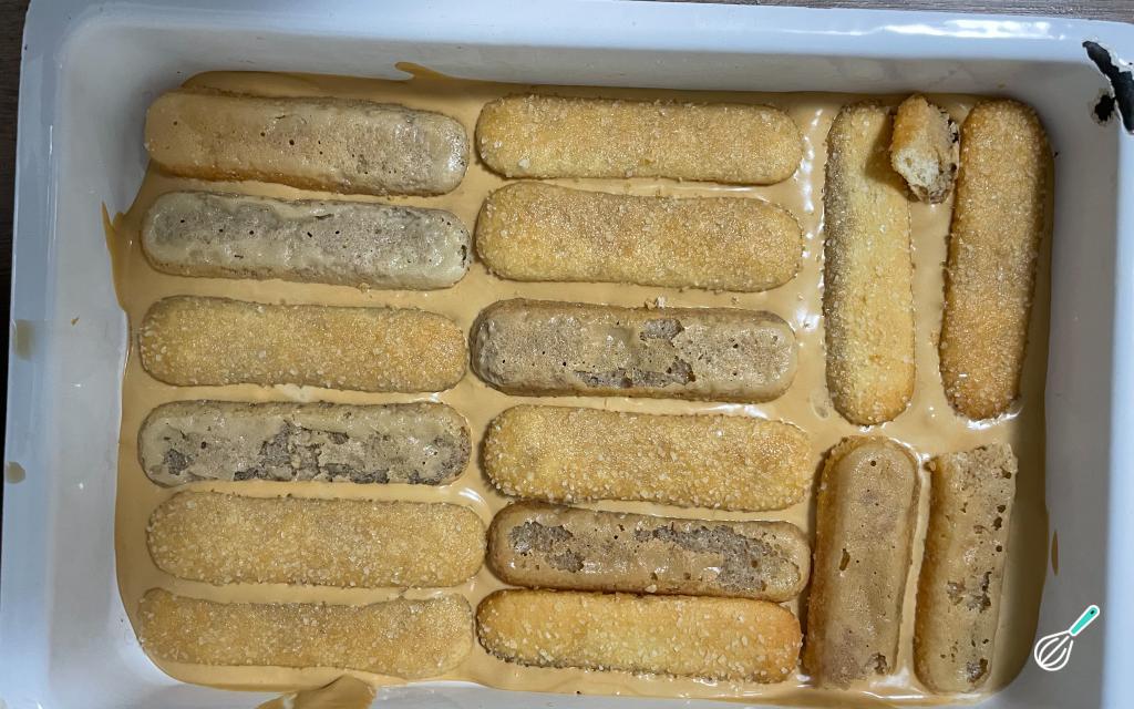 Molhe ligeiramente as bolachas champanhe na mistura de café e faça uma camada sobre a mistura de doce de leite.