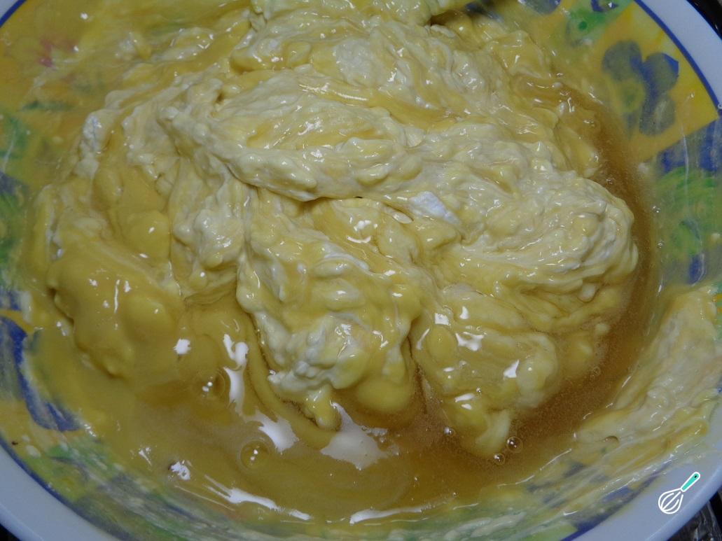 Enquanto hidrata a gelatina sem sabor, bata o creme de leite até ficar cremoso e formar picos. Assim que estiver pronto, despeje-o sobre a mistura de leite condensado e manga aos poucos, fazendo movimentos envolventes para integrar tudo.