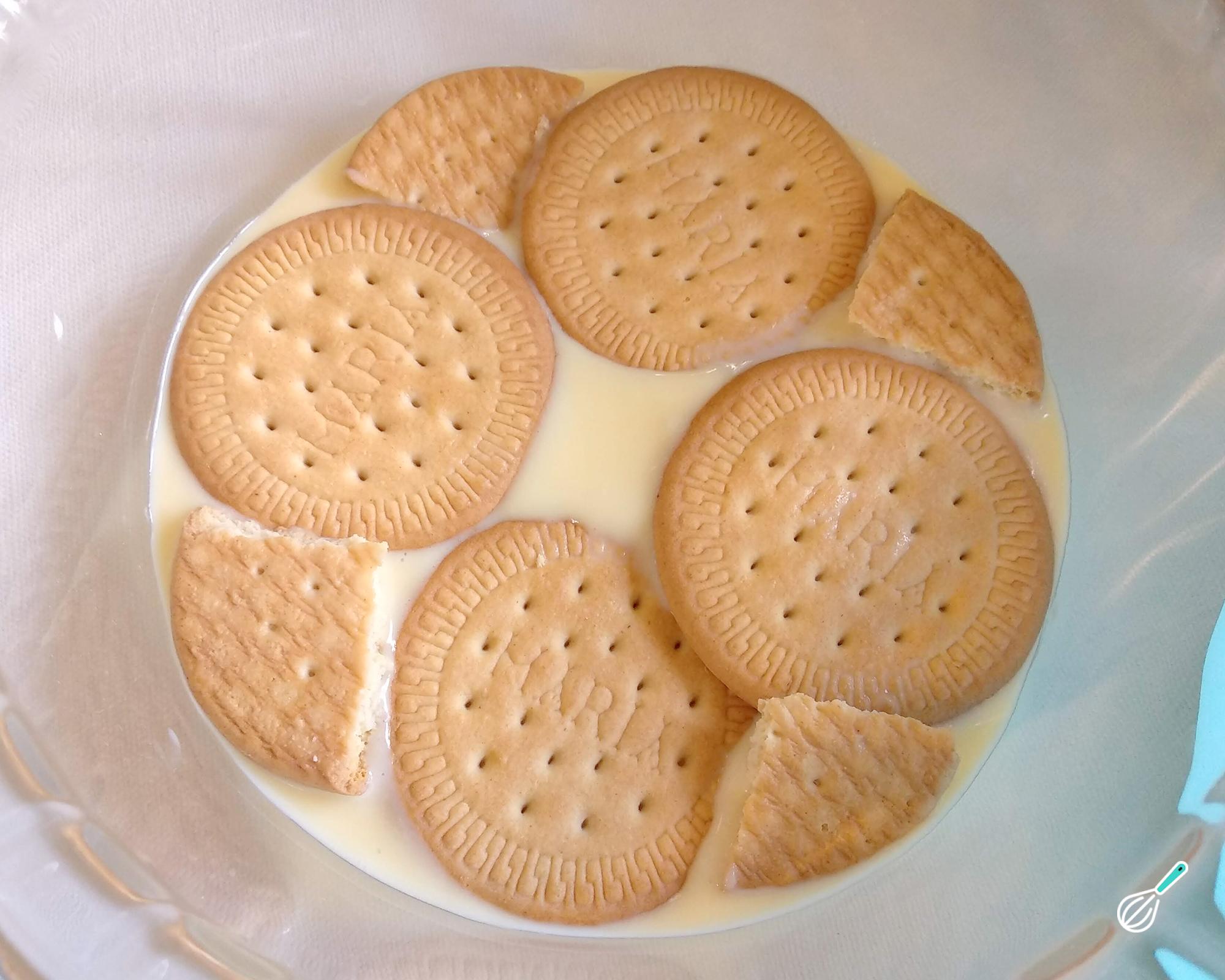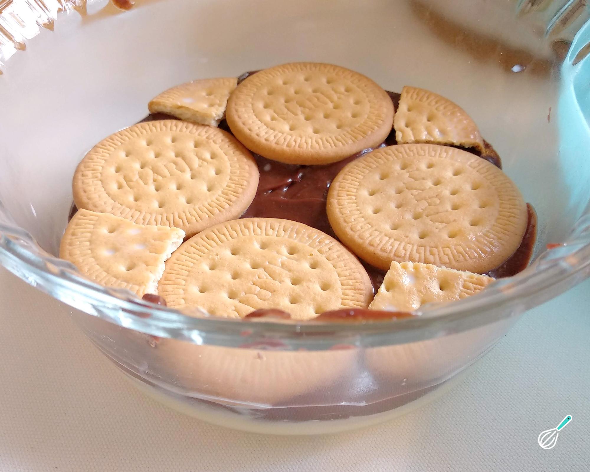Dica: Neste caso usei bolacha Maria, mas você pode usar biscoito maisena ou até biscoito de chocolate.