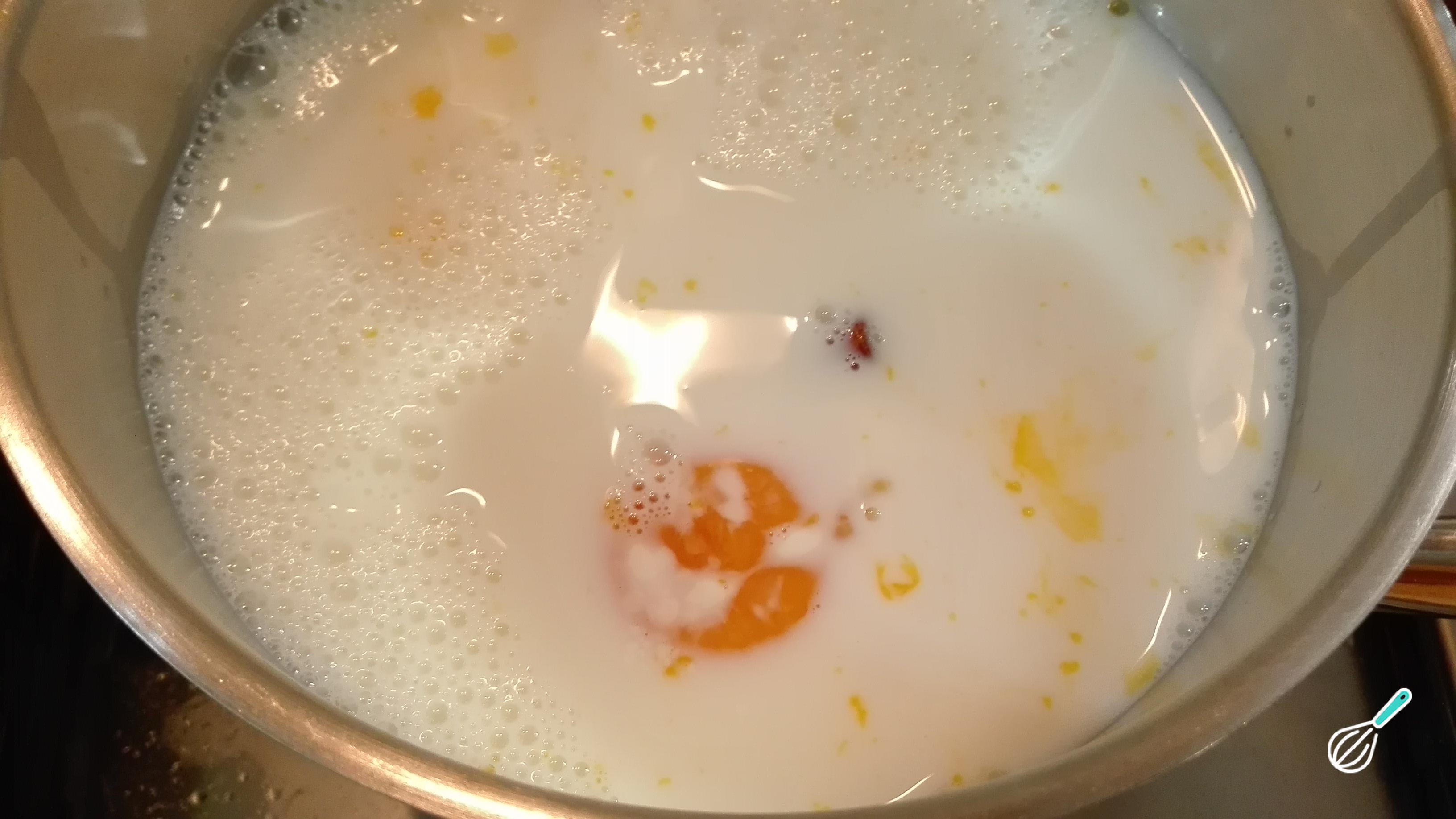 Após o passo anterior retire o pau de canela e transfira o creme para uma tigela. Deixe esfriar, mexendo de vez em quando.