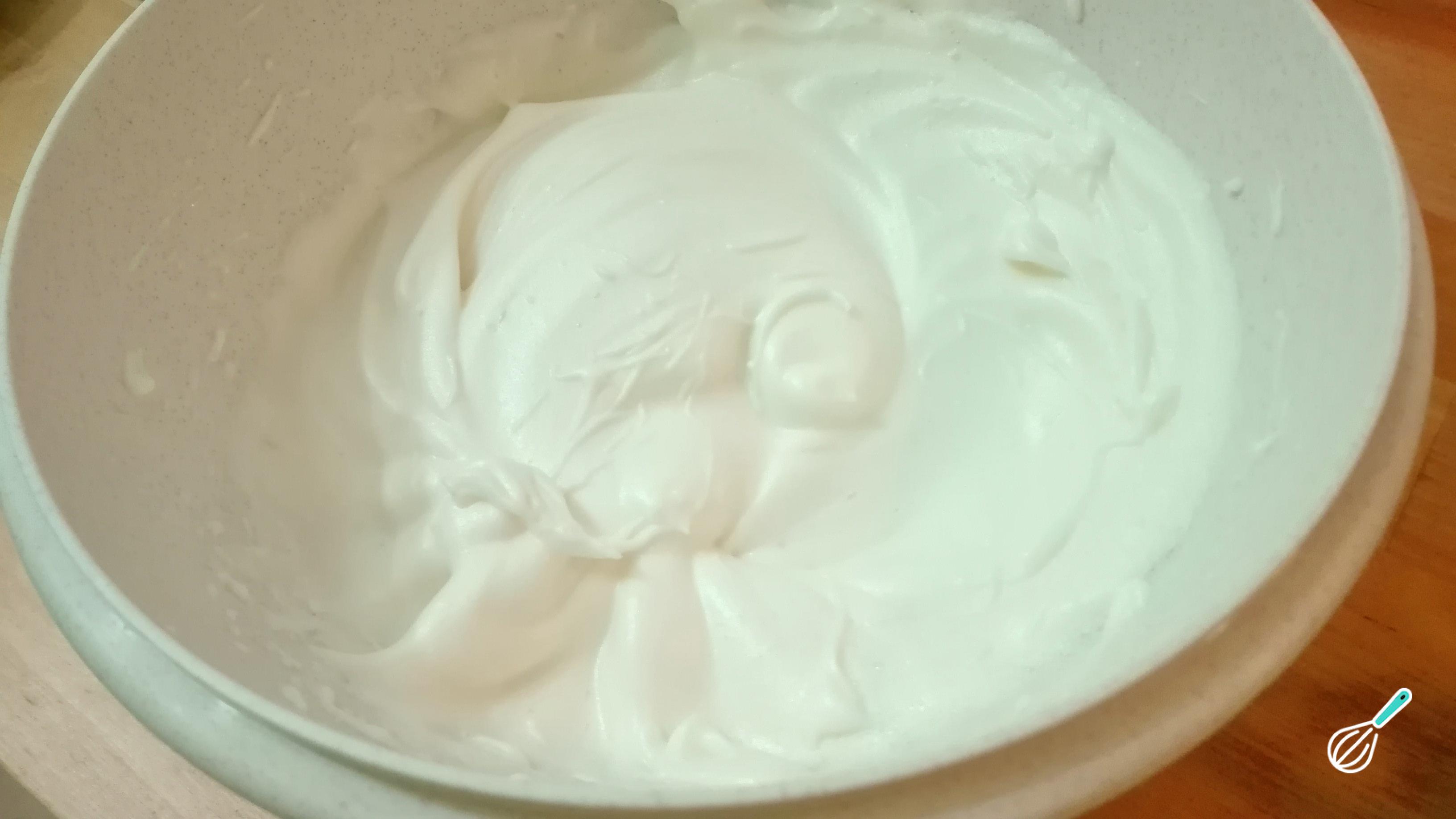 Enquanto isso, bata o creme de leite com o restante açúcar, até ficar cremoso.