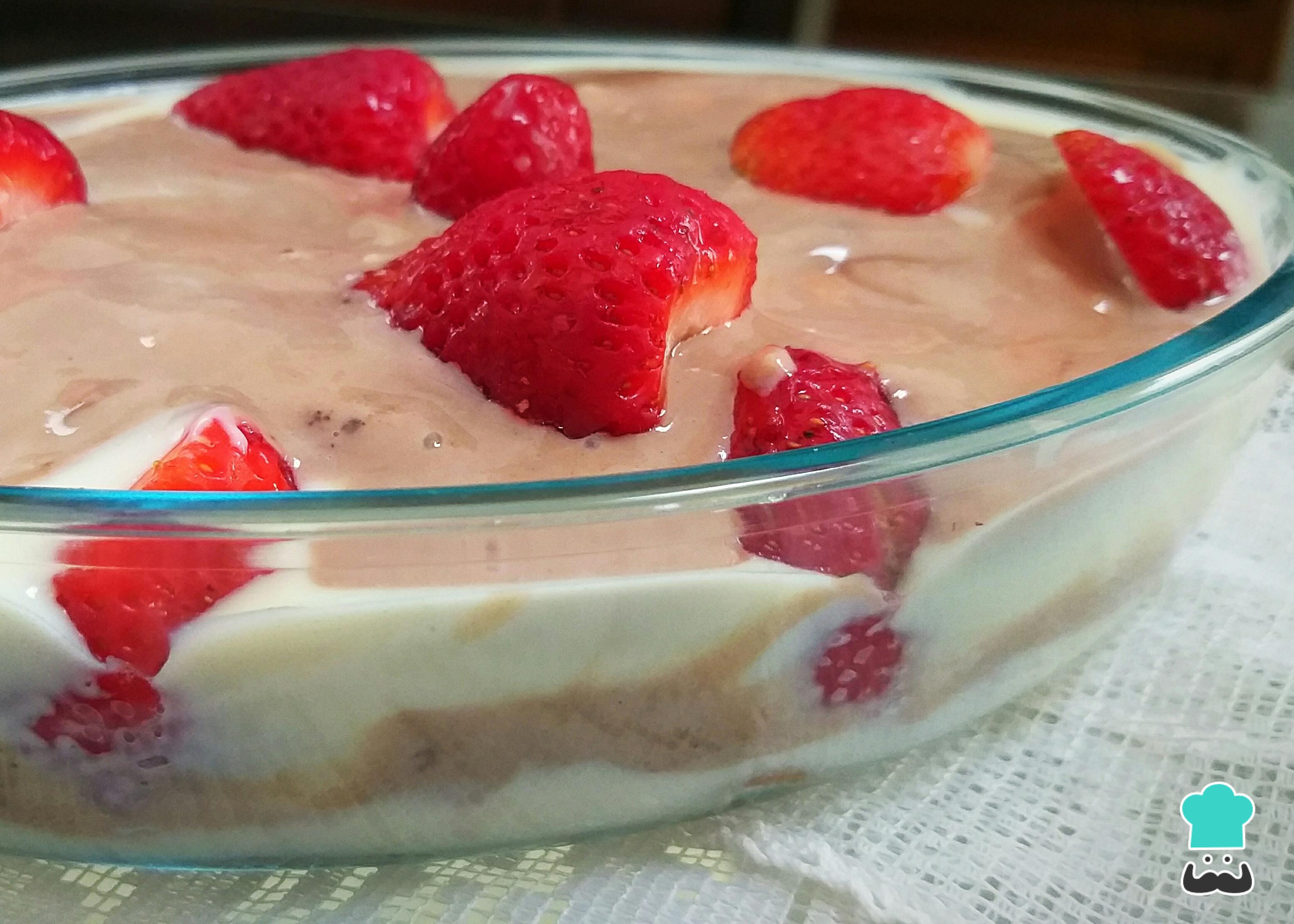 Como fazer Pavê de morango com chocolate e biscoito maizena: