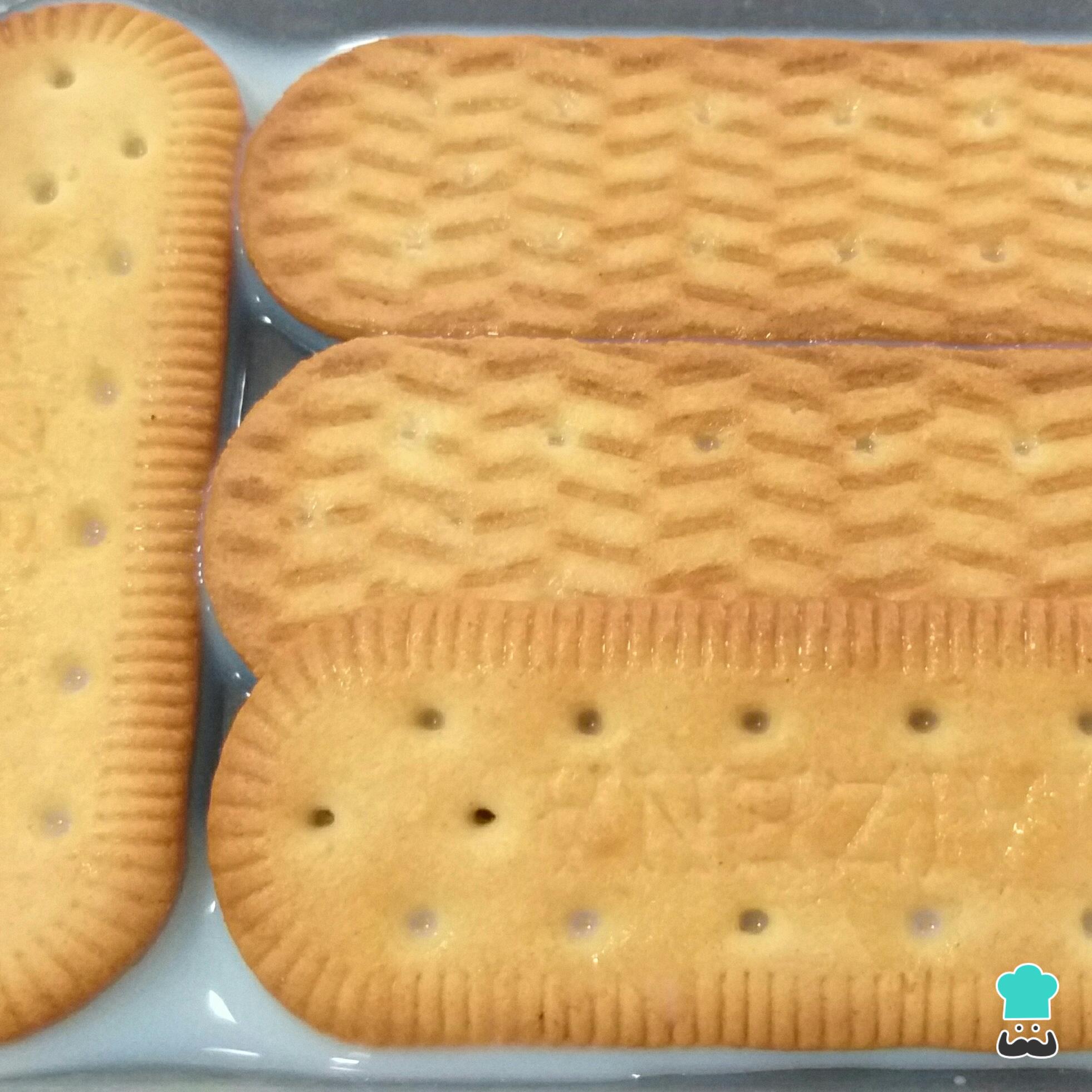 Após o tempo indicado, mergulhe as bolachas no leite e transfira para um refratário.