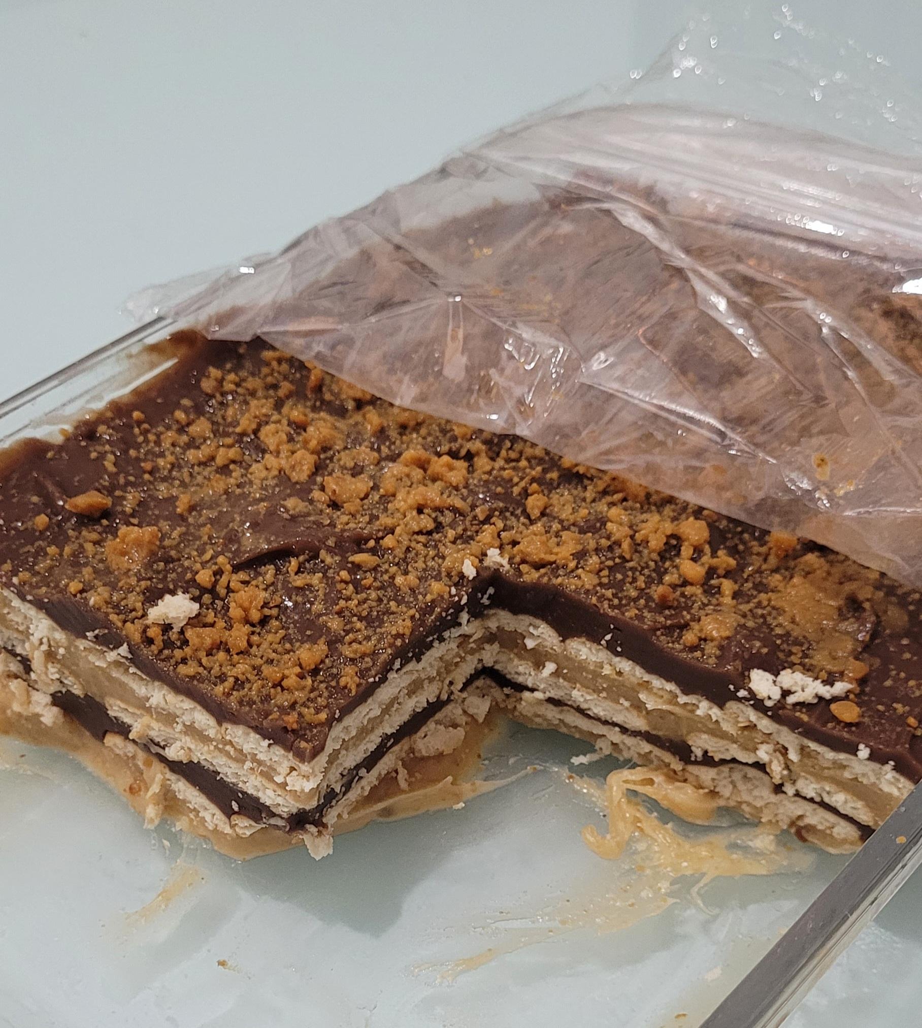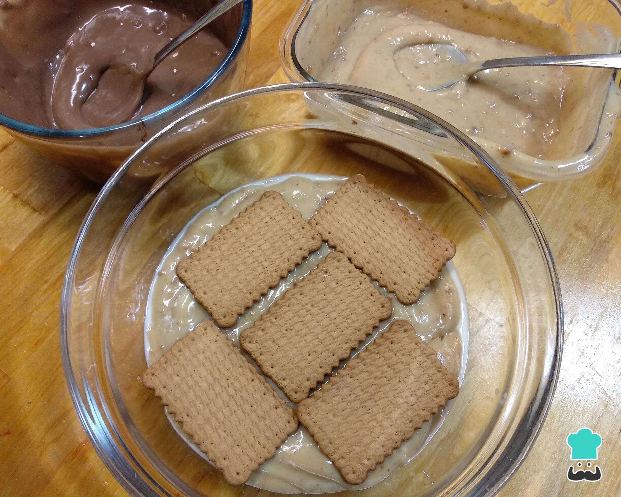 Dica: Misture os cremes depois de retirar o filme plástico, assim eles voltarão a ficar bem cremosos. Use um biscoito vegano (sem leite, sem ovo, sem manteiga).