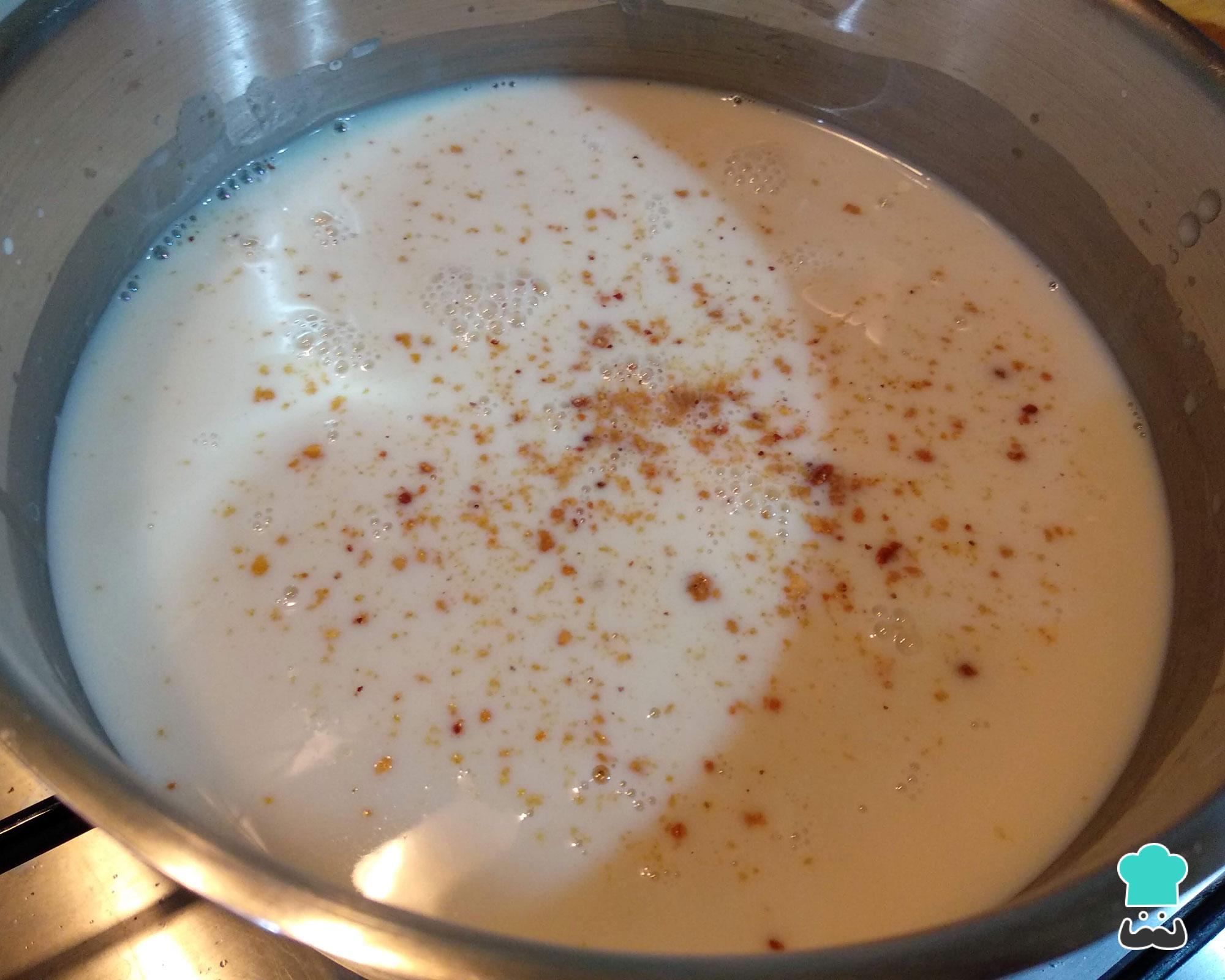 Coloque o restante da bebida de aveia na panela em que vai preparar o creme de paçoca. Adicione também o açúcar, as paçocas esfareladas e, se quiser, a essência de baunilha. Leve ao fogo médio, mexendo sempre.