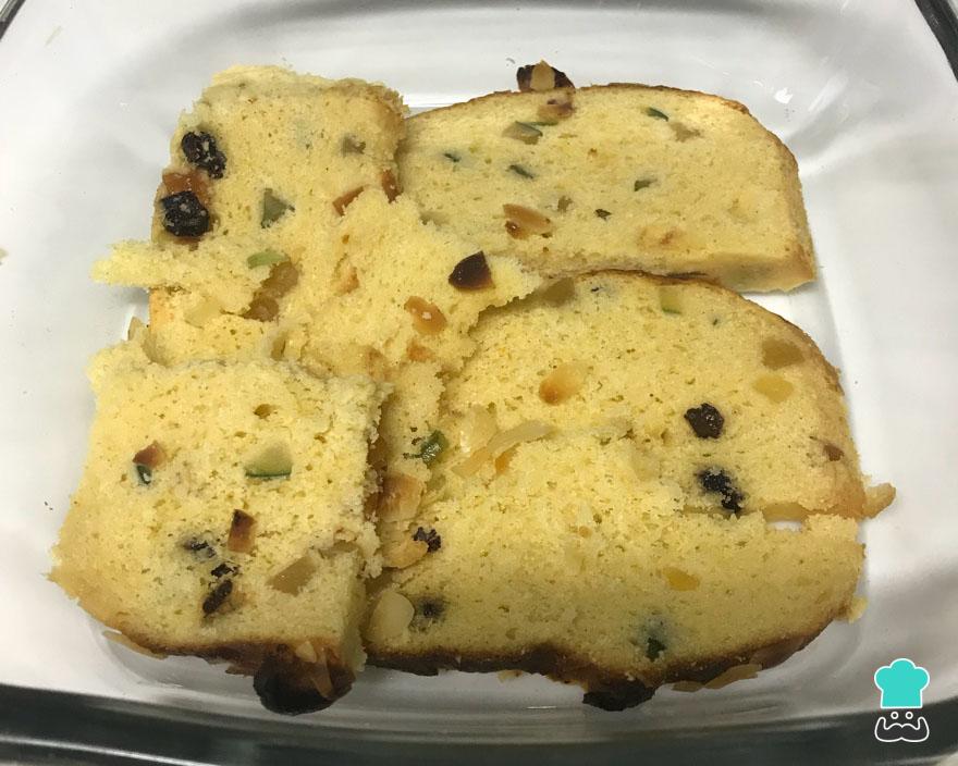 Montagem: no fundo do recipiente em que iremos servir o pavê comece colocando uma camada de Panetone fatiado.