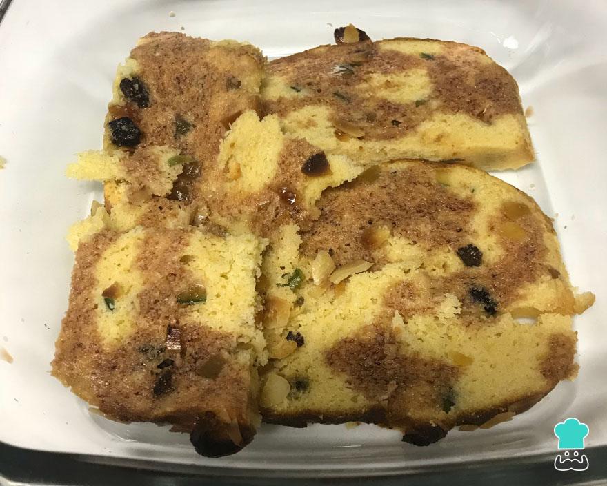 Em seguida molhe as fatias de Panetone com a calda de vinho do porto preparada anteriormente.