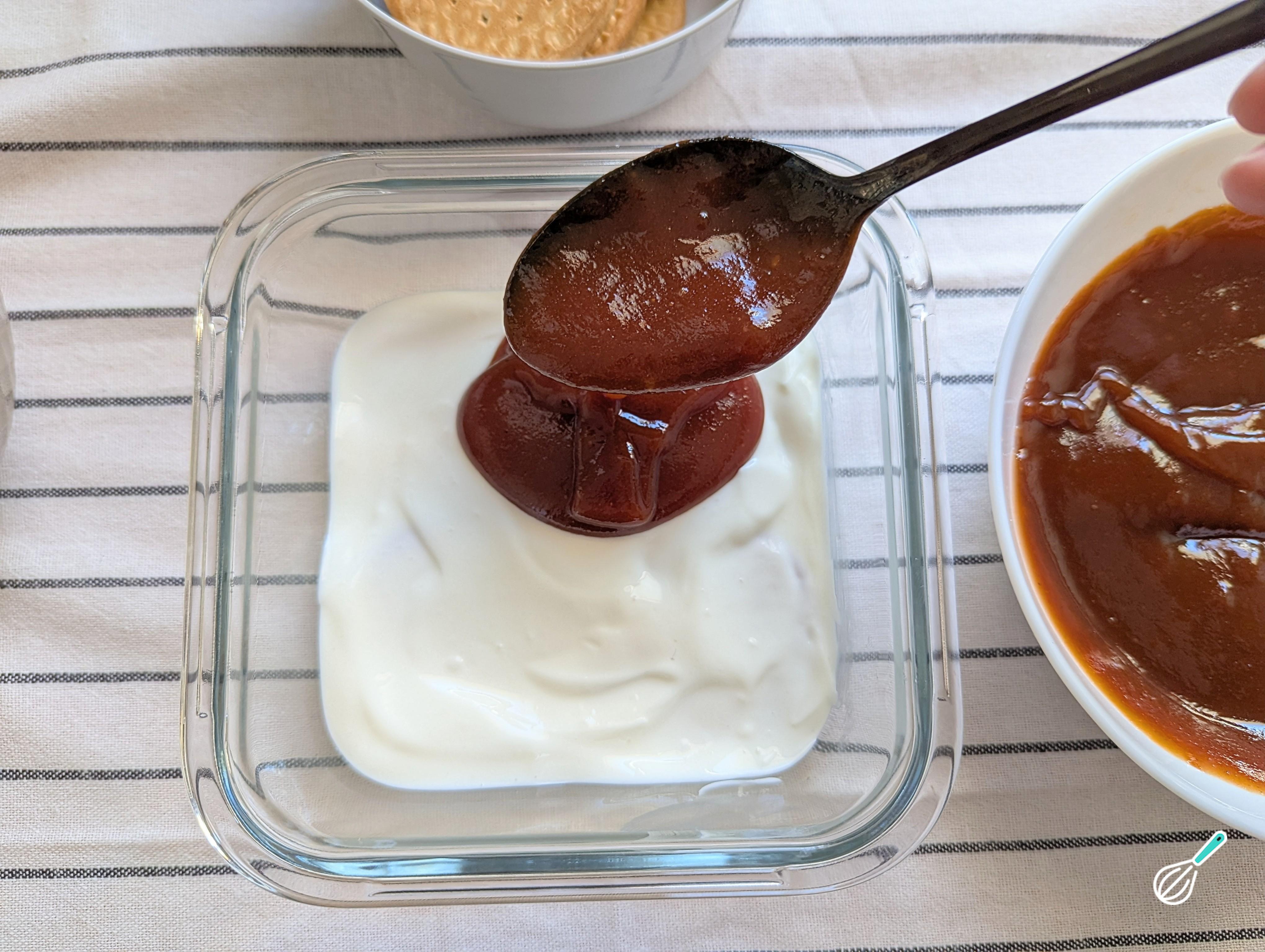 Em seguida, acrescente uma camada da goiabada cremosa, espalhando uniformemente.