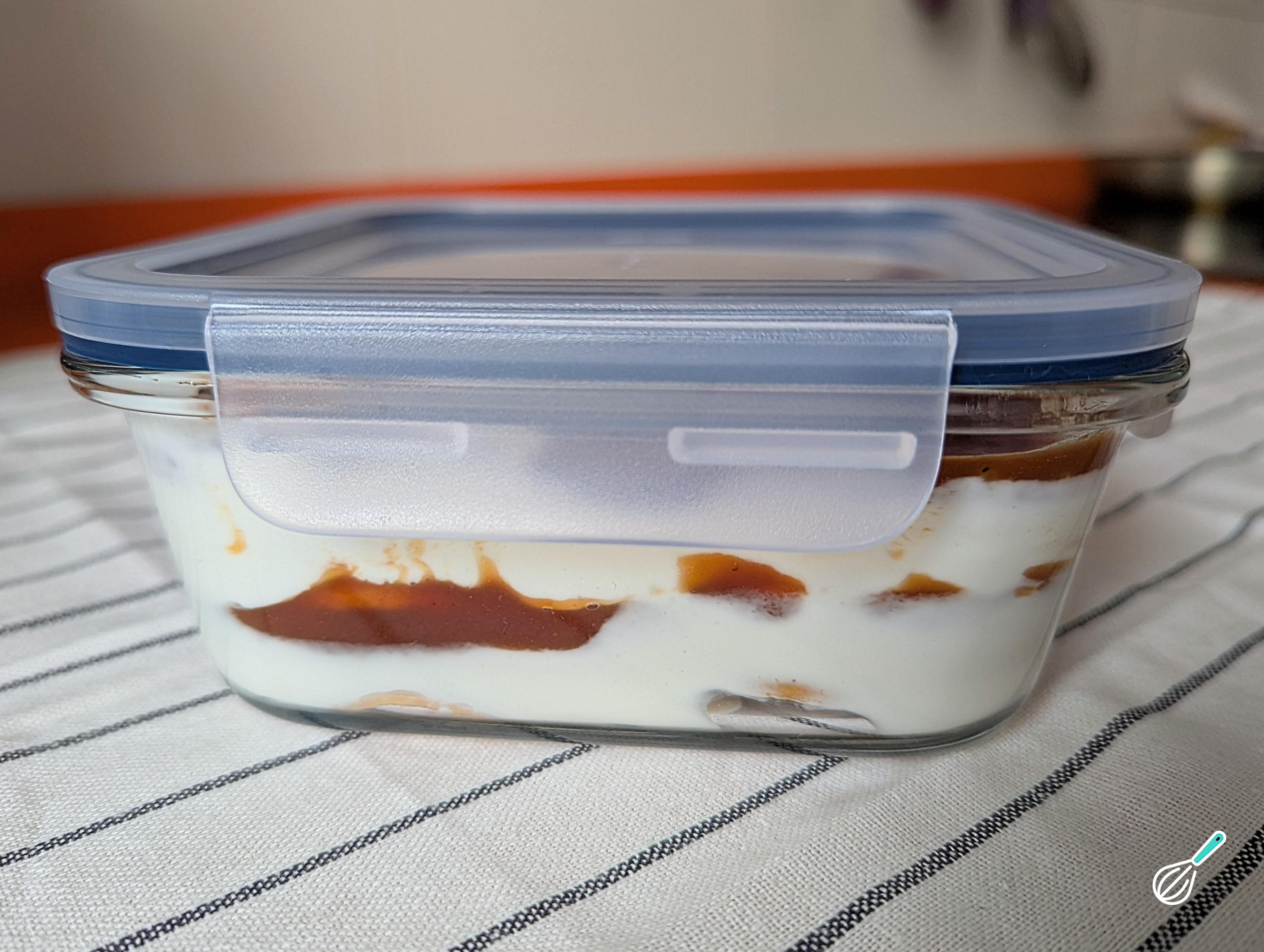 Cubra o refratário com uma tampa ou plástico filme e leve à geladeira por no mínimo 3 horas. Esse tempo é importante para que os biscoitos fiquem macios e os sabores se integrem.