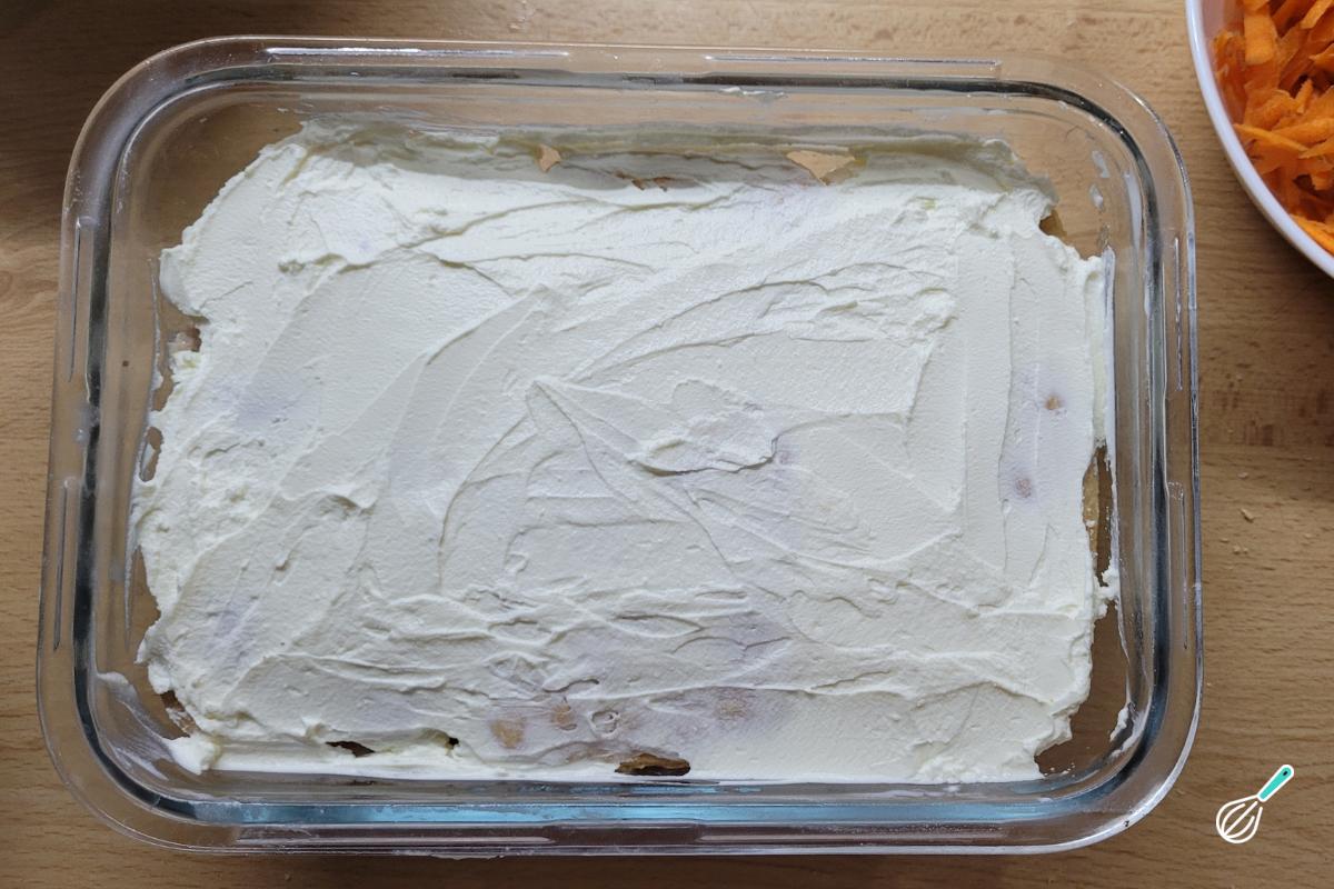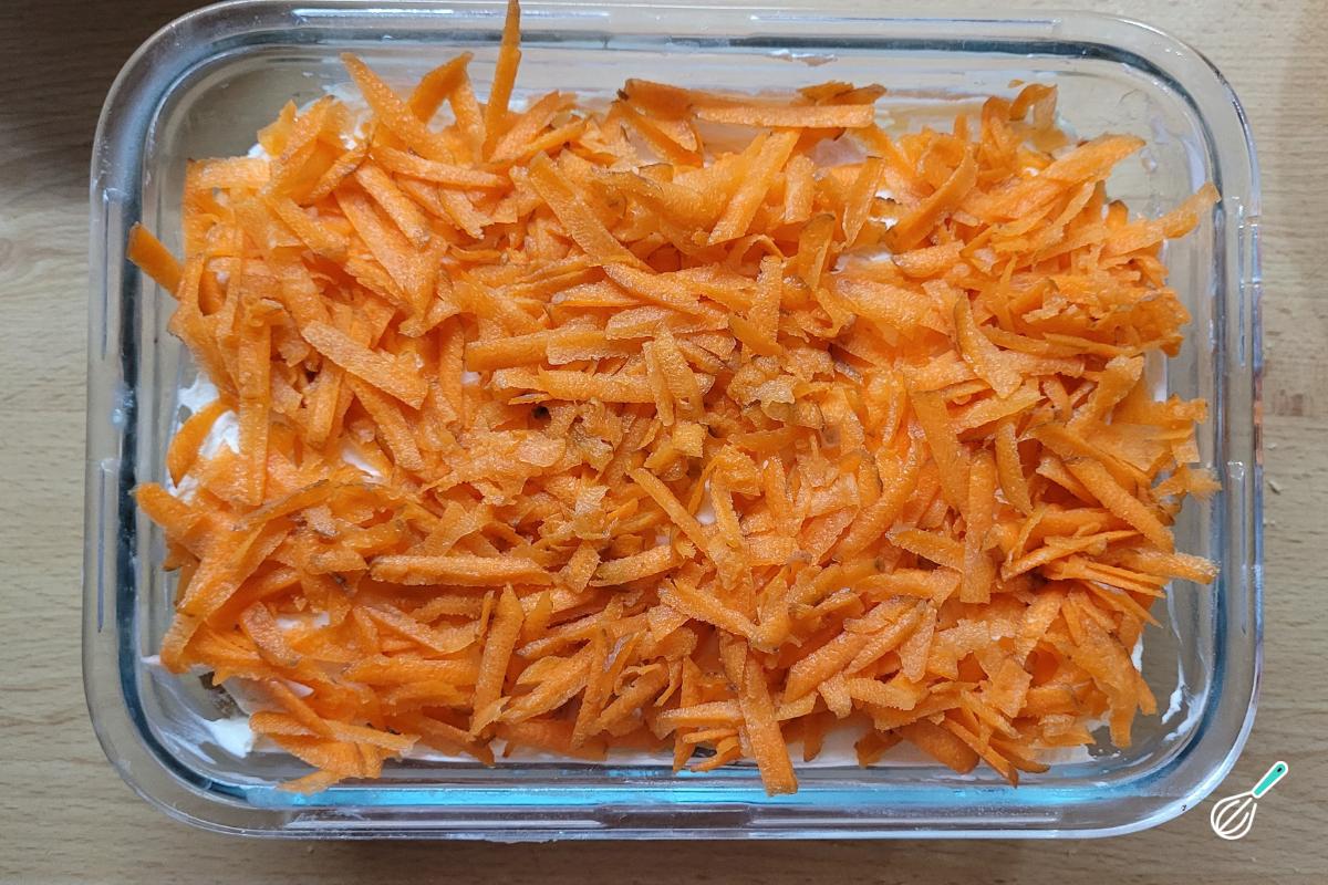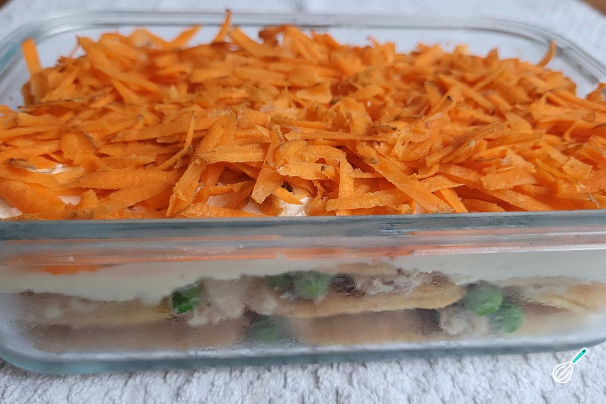 Espalhe a cenoura ralada.