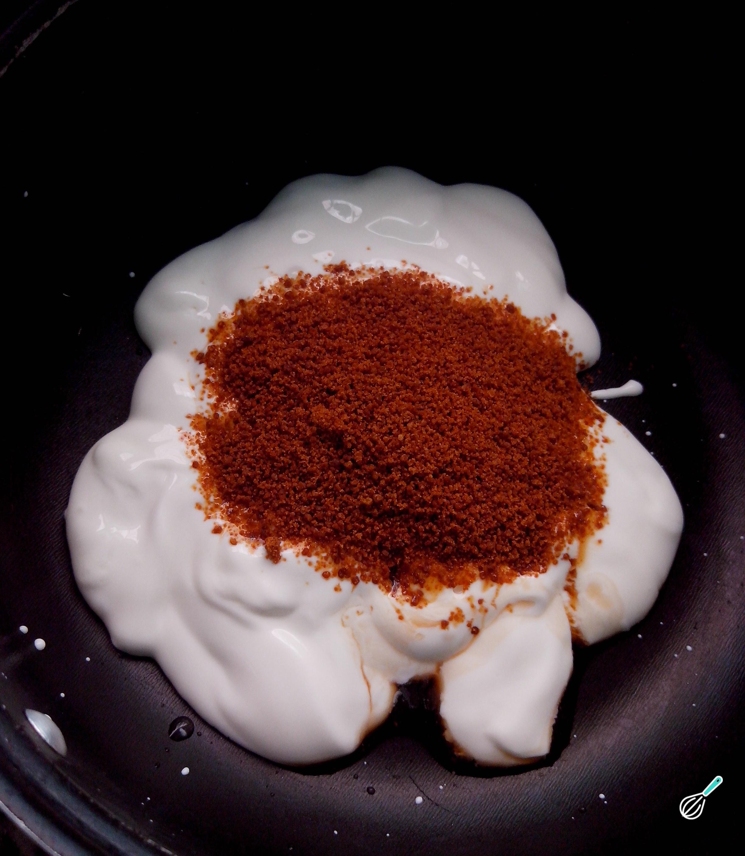 Em uma panela em fogo baixo junte o creme de leite e o açúcar de coco. Mexa até engrossar.