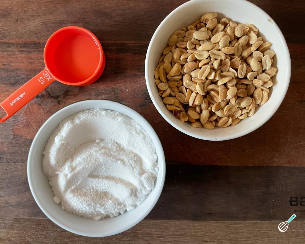 Separe todos os ingredientes para preparar o seu Pé de moleque com 3 ingredientes!