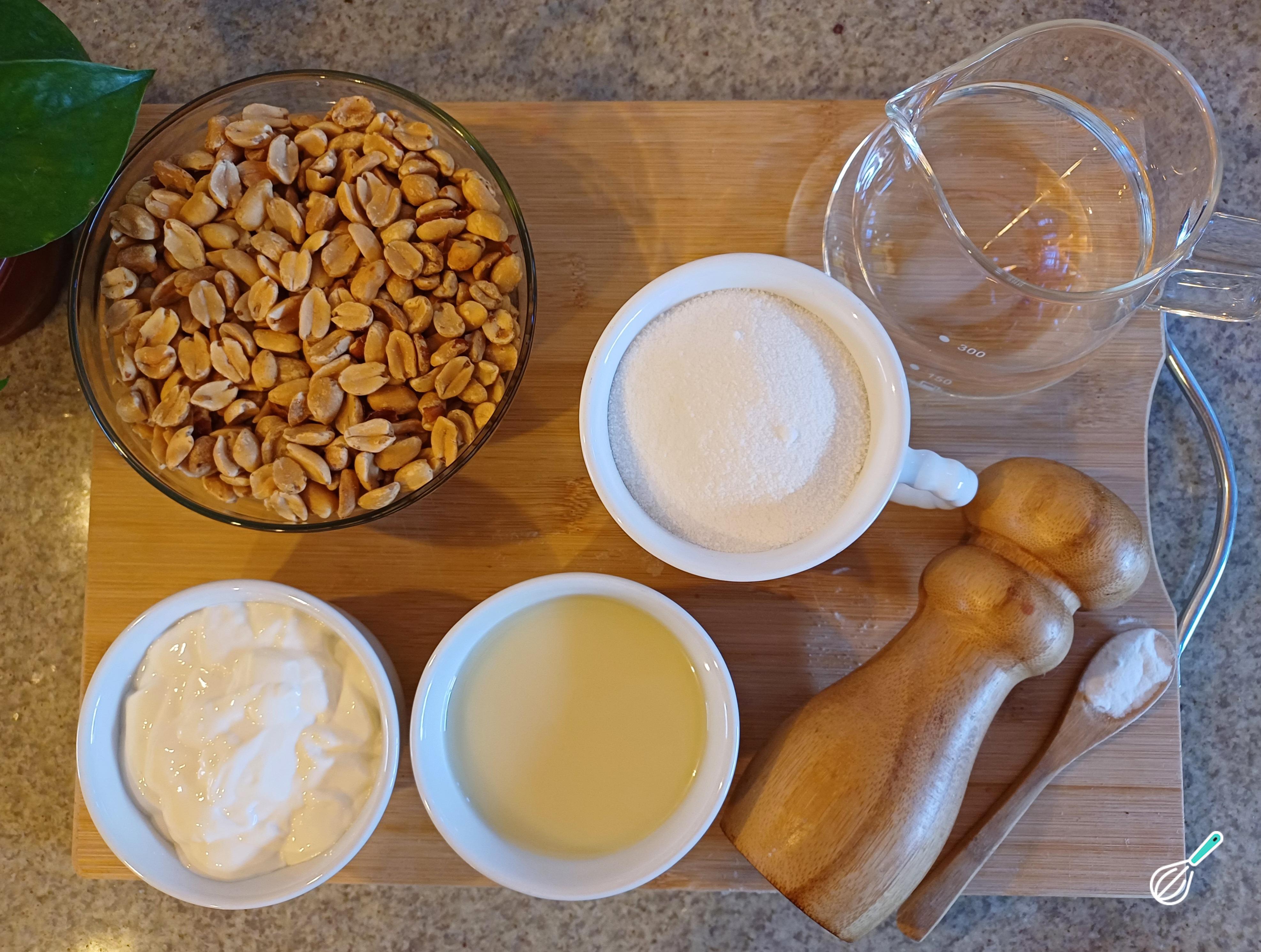 Reúna todos os ingredientes necessários para o preparar o nosso pé de moleque cremoso.