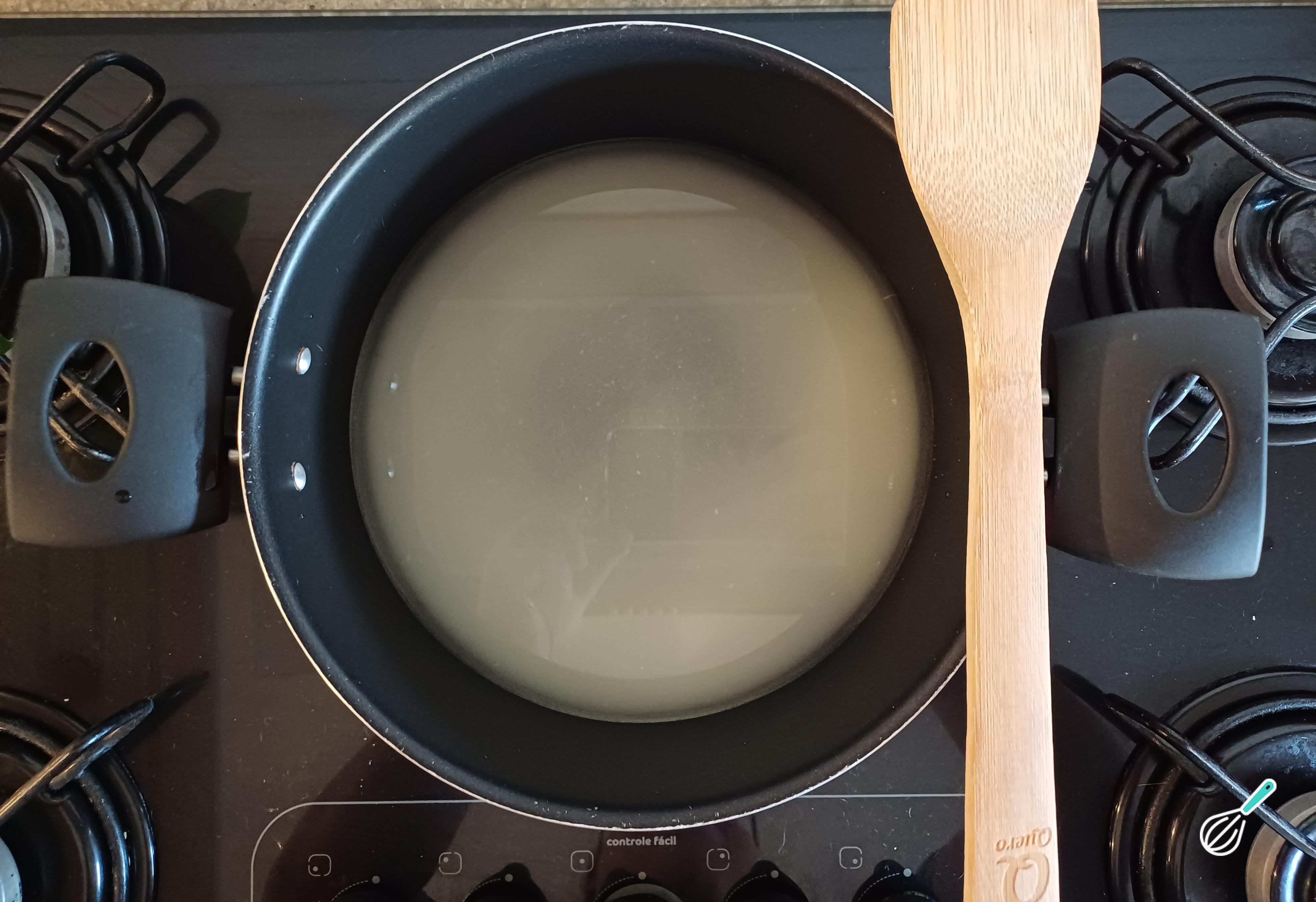 Em uma panela, coloque o açúcar e a água e misture bem.