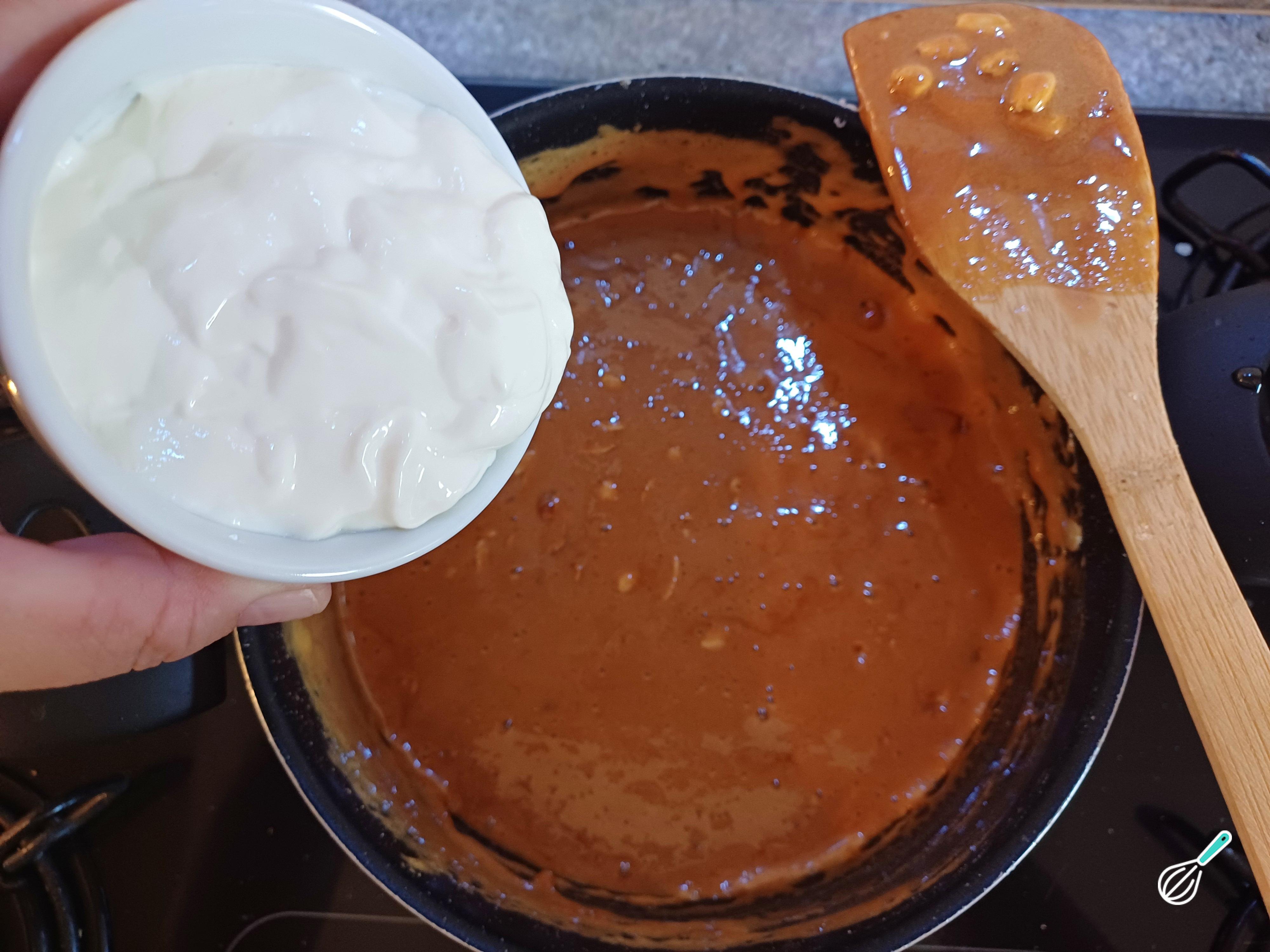 Por último adicione o creme de leite, que ajudará a consistência cremosa do doce, e misture por mais 3 minutos até que todos os ingredientes fiquem bem incorporados.