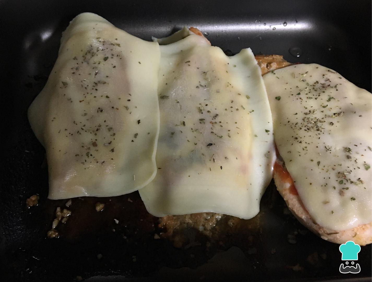 Quando dourar coloque as fatias de queijo, um pouco mais de orégano e devolva ao forno até derreter o queijo.