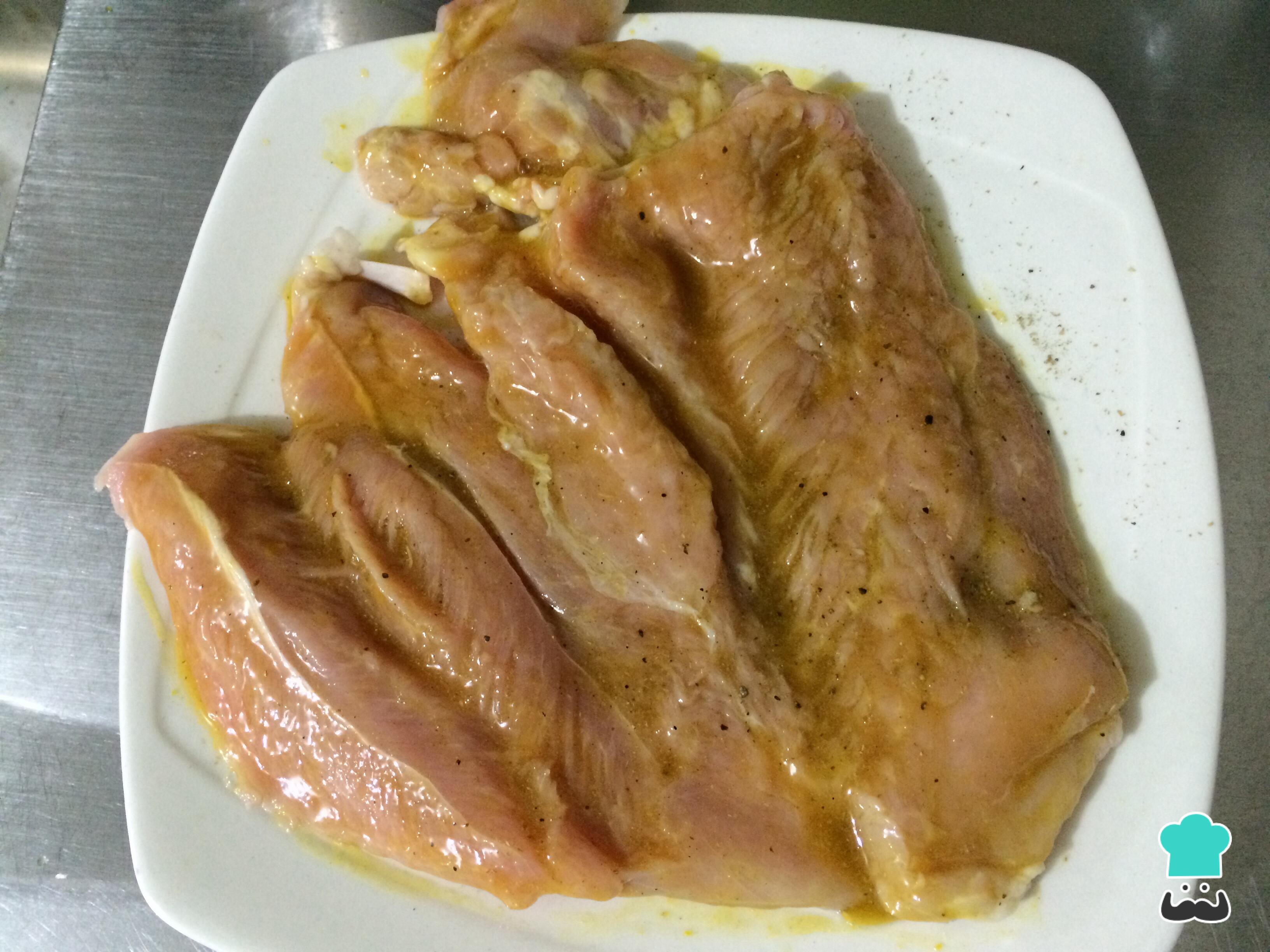 Para preparar esta receita de peito de peru com mostarda no forno comece por reunir os ingredientes necessários.