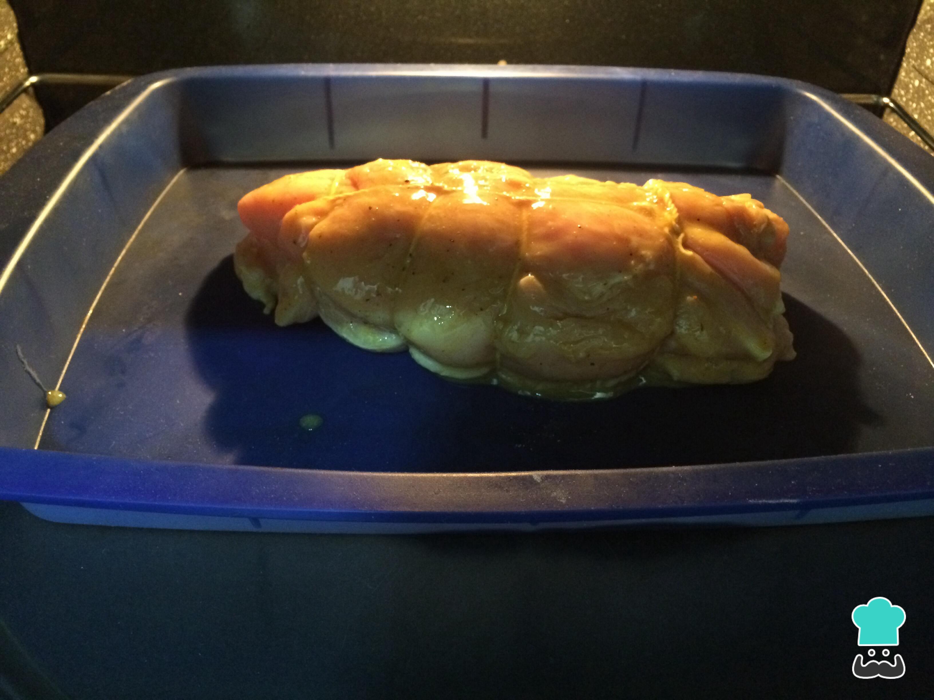 Após esse tempo, cozinhe o peito de peru com mostarda noforno por 30-40 minutos. À medida que cozinha, pincele o molho por fora, para conferir mais sabor e para que a carne fique dourada.