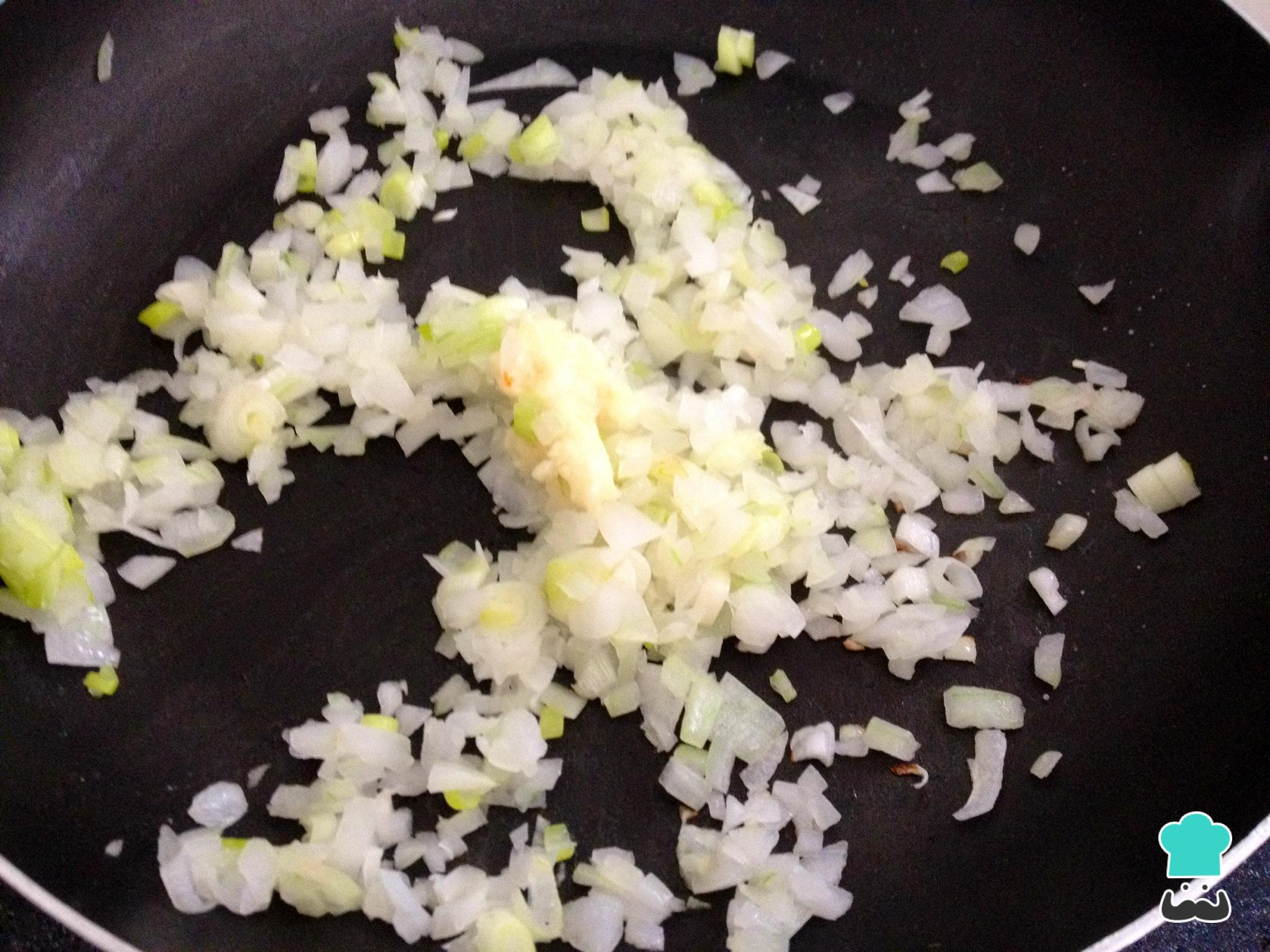 Em uma panela com azeite quente, adicione os dois tipos de cebola com o alho esmagado, refogue por 2 minutos.