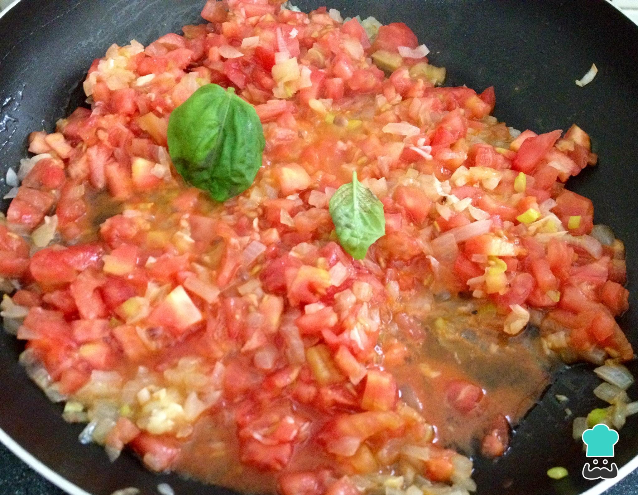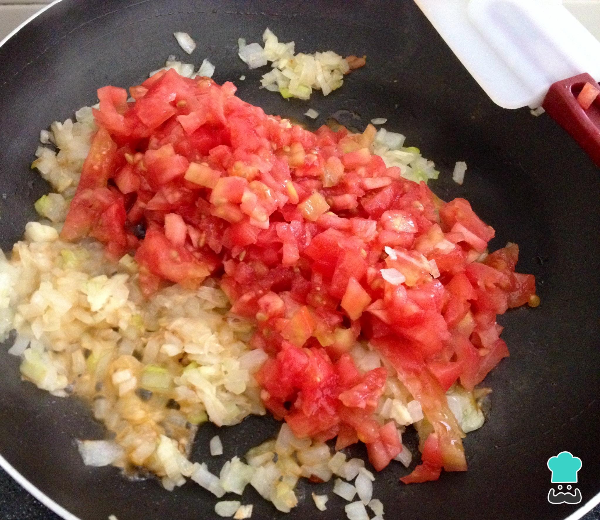 Acrescente os tomates pelados e cortados em cubos pequenos.