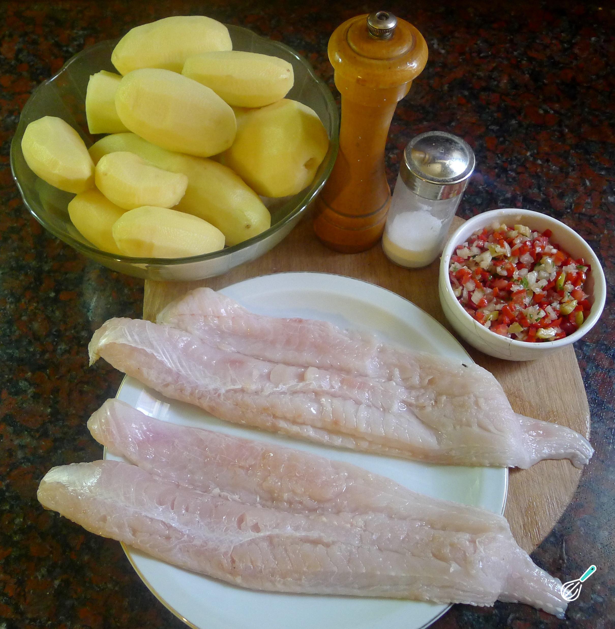 Prepare os ingredientes para fazer a receita de peixe assado no forno com batatas.