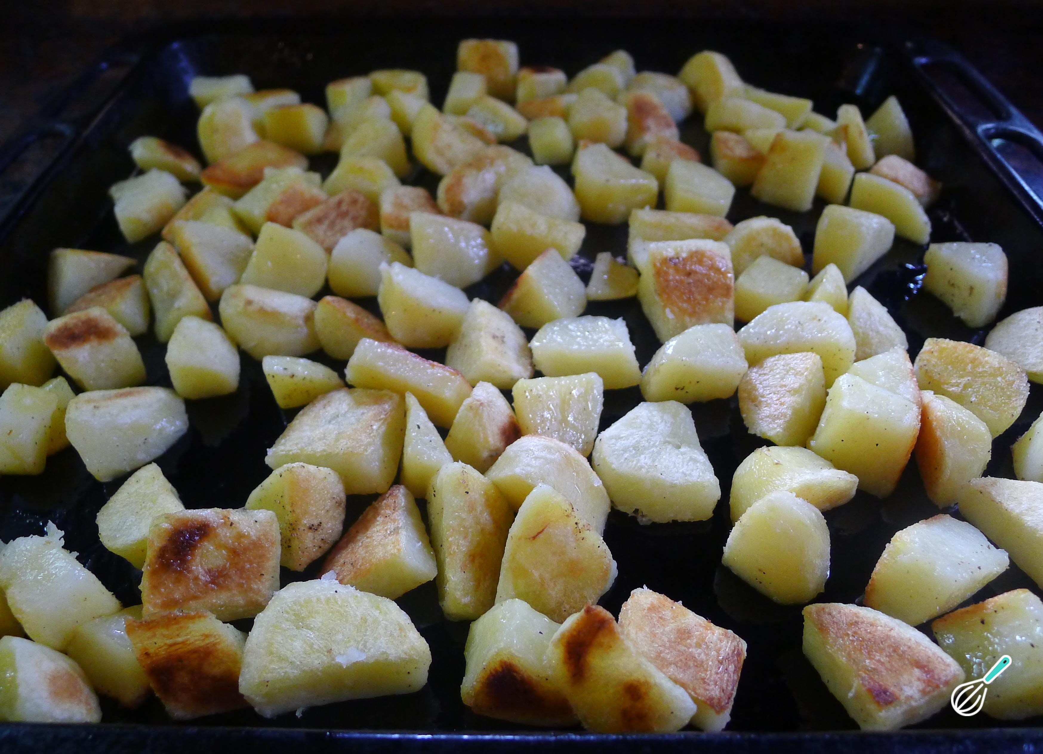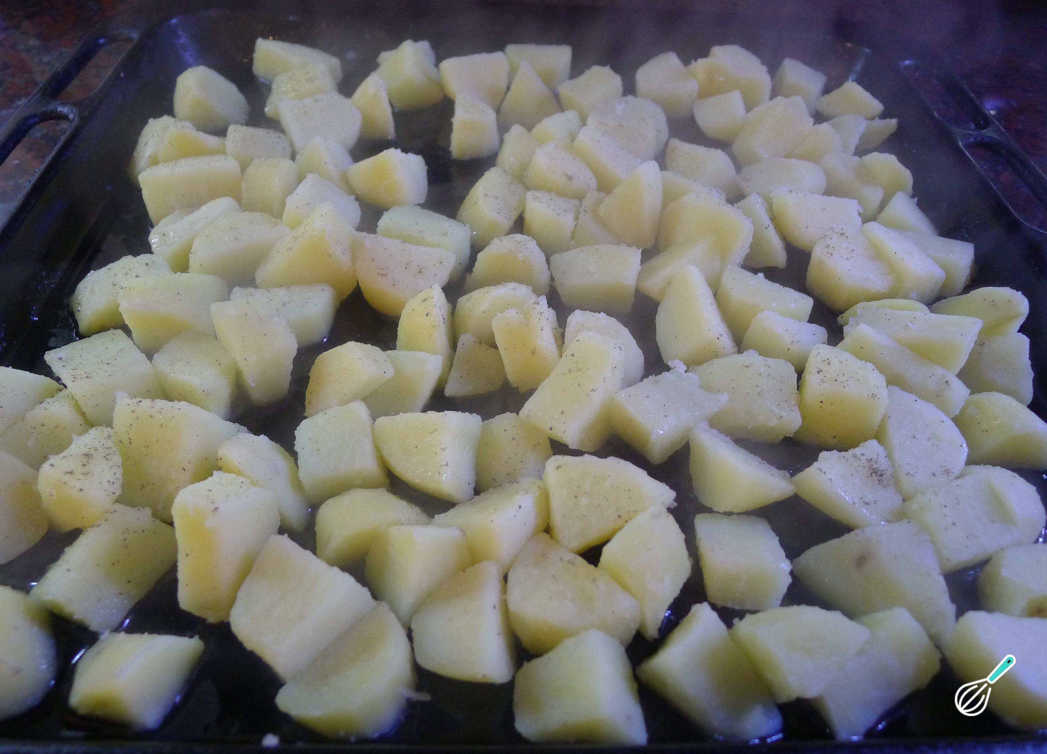 Em seguida, asse as batatas em uma bandeja com um pouco de óleo.