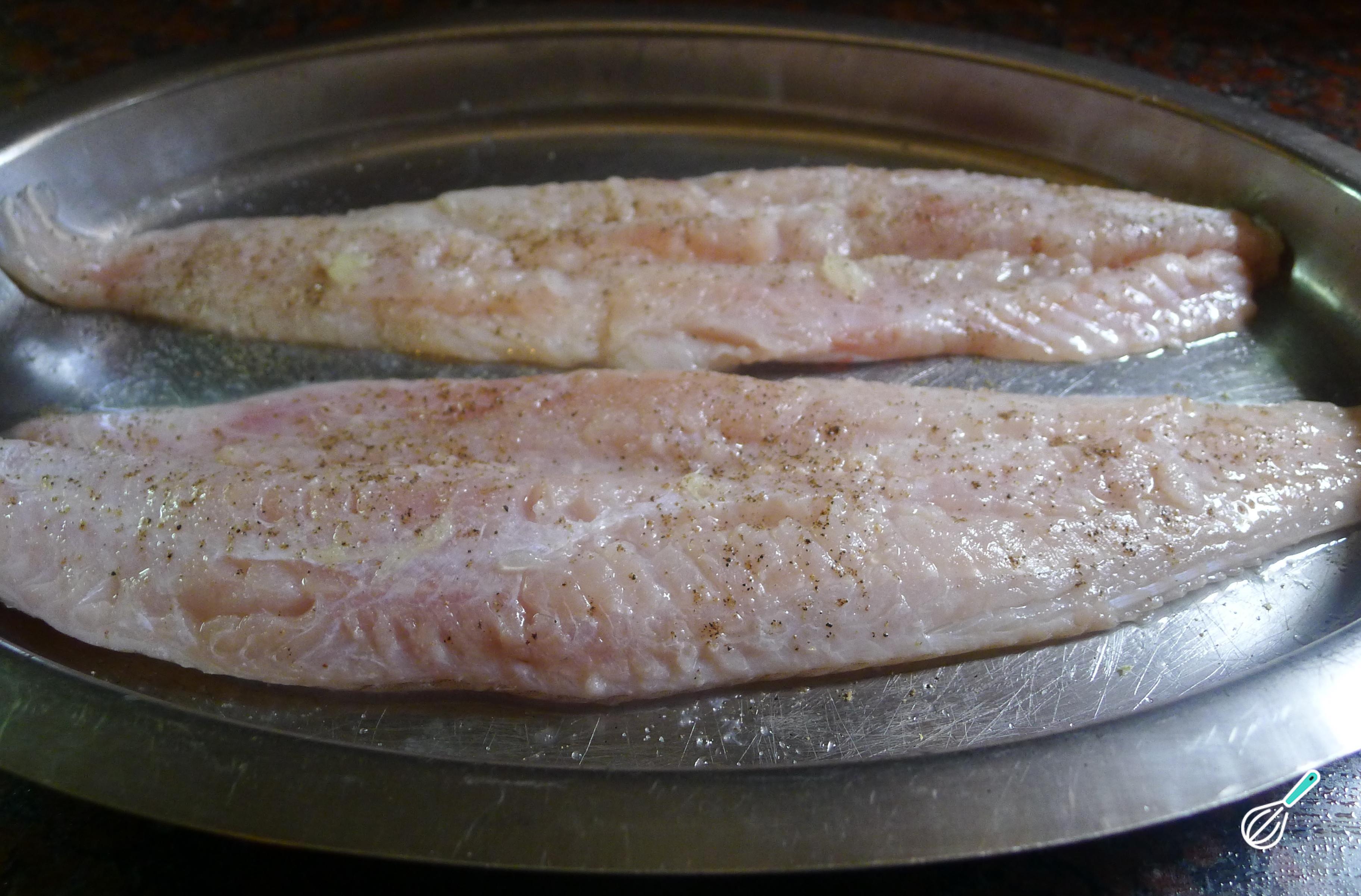 Lave o peixe e tempere com limão, sal e pimenta. Leve ao forno quente por 20 minutos. Deve dourar só de um lado, para que o filé asse completamente sem secar.
