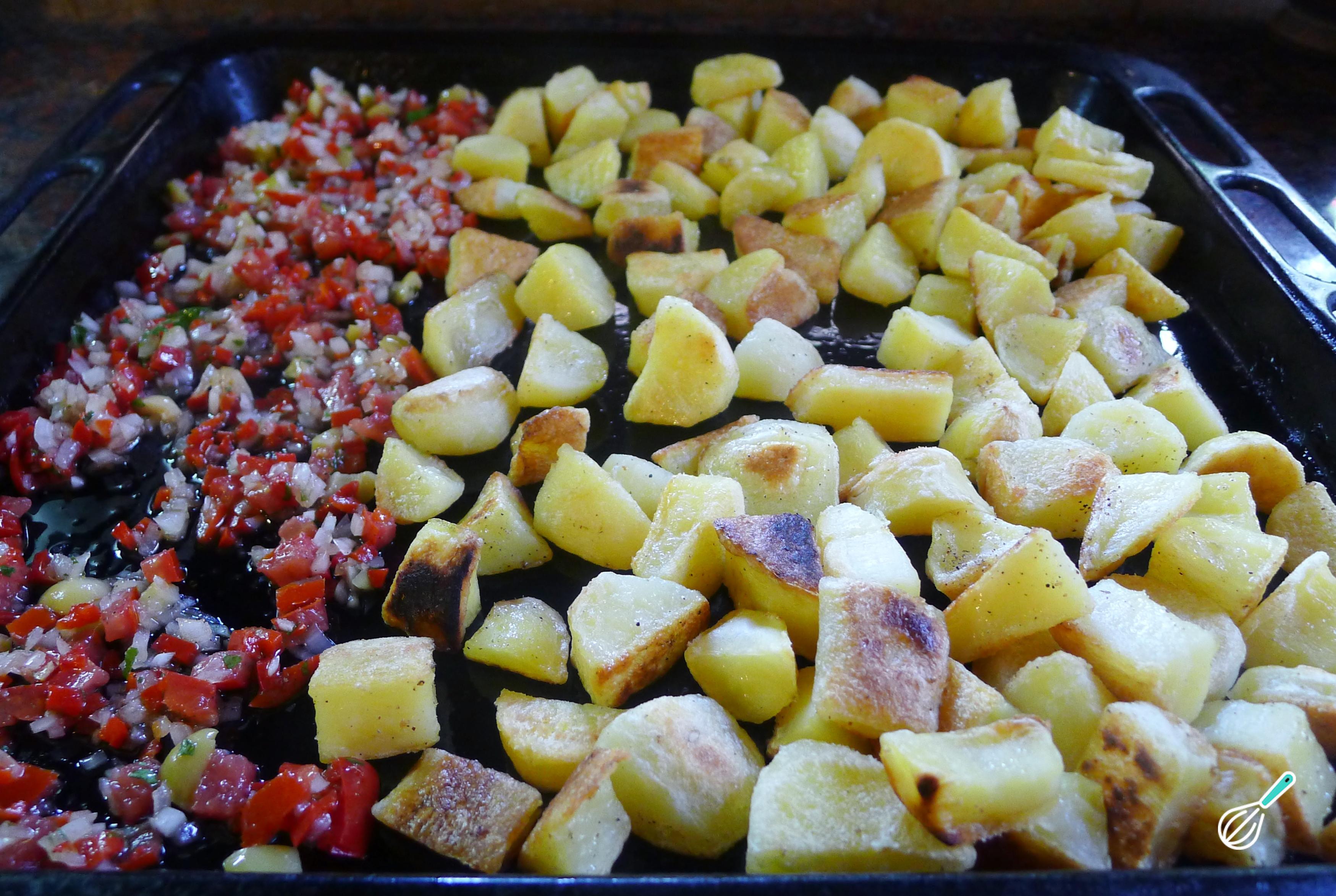 Vire as batatas para que cozinhem de forma uniforme durante a preparação.