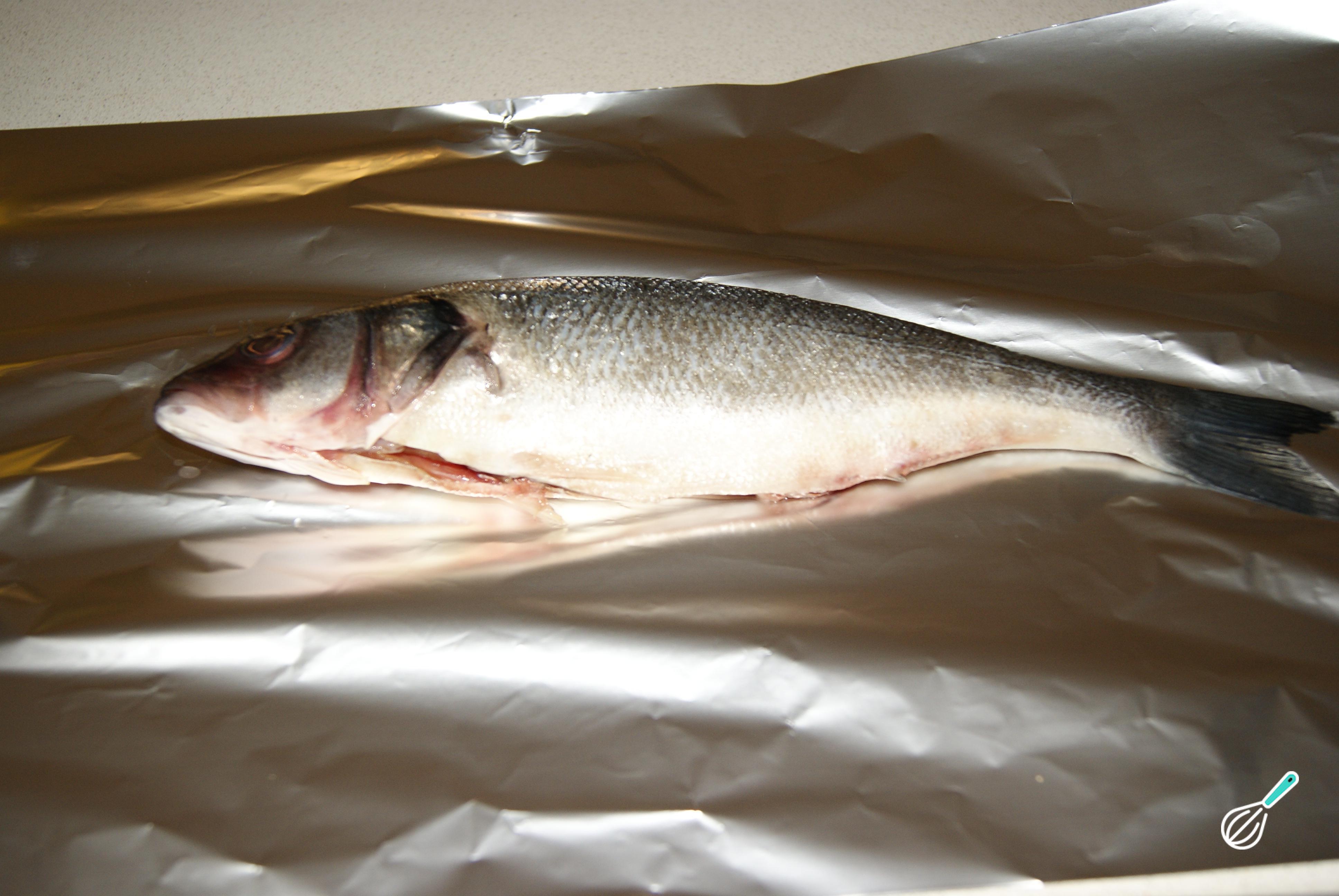 Coloque cada um dos robalos numa folha de papel alumínio - a folha de alumínio deve ser grande o suficiente para embrulhar todo o peixe.